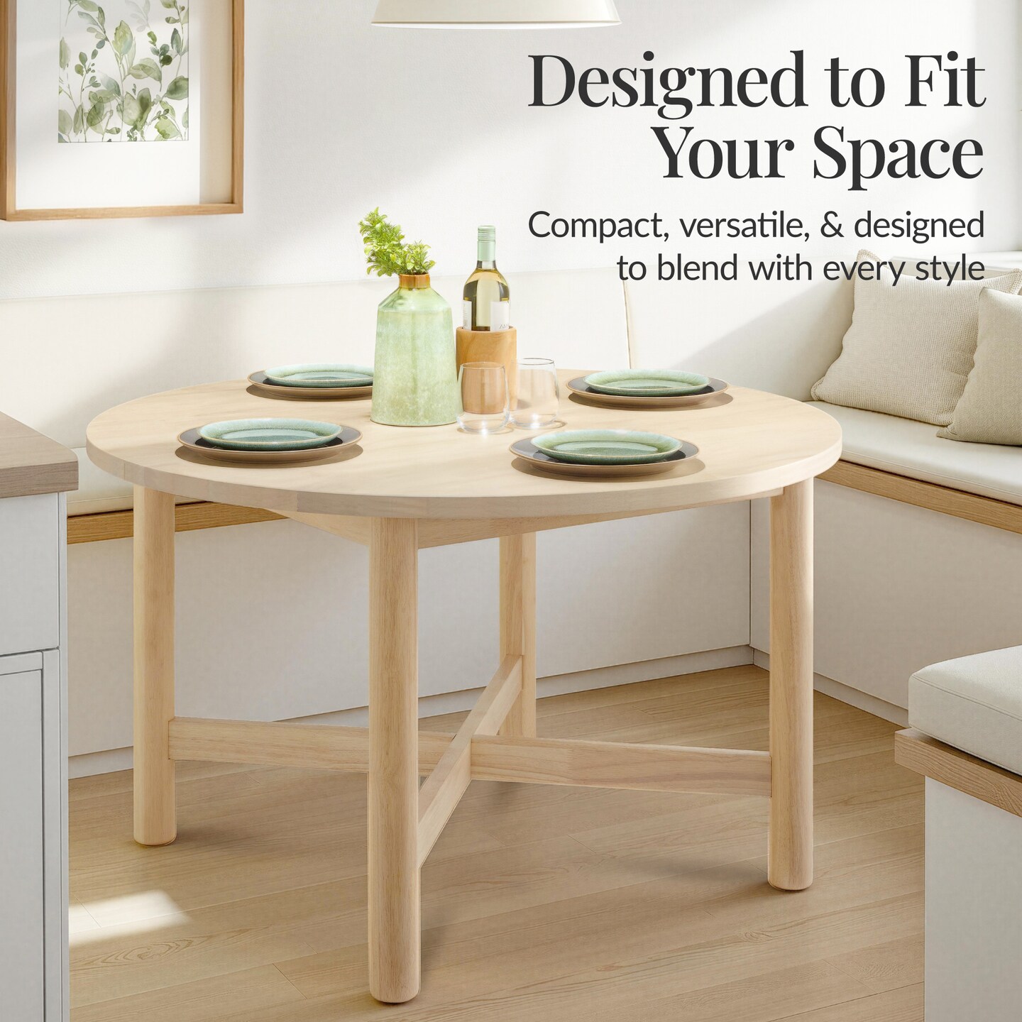 Best Choice Products 47In Round Solid Wood Dining Table, Modern Farmhouse Table For 4, Space Saving, Easy Assembly
