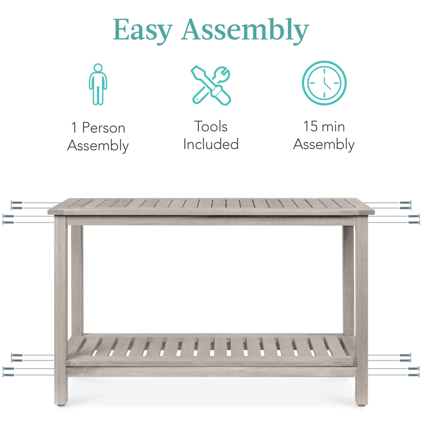 Best Choice Products 48in 2-Shelf Indoor Outdoor Wooden Console Table Multifunctional Buffet Bar Storage