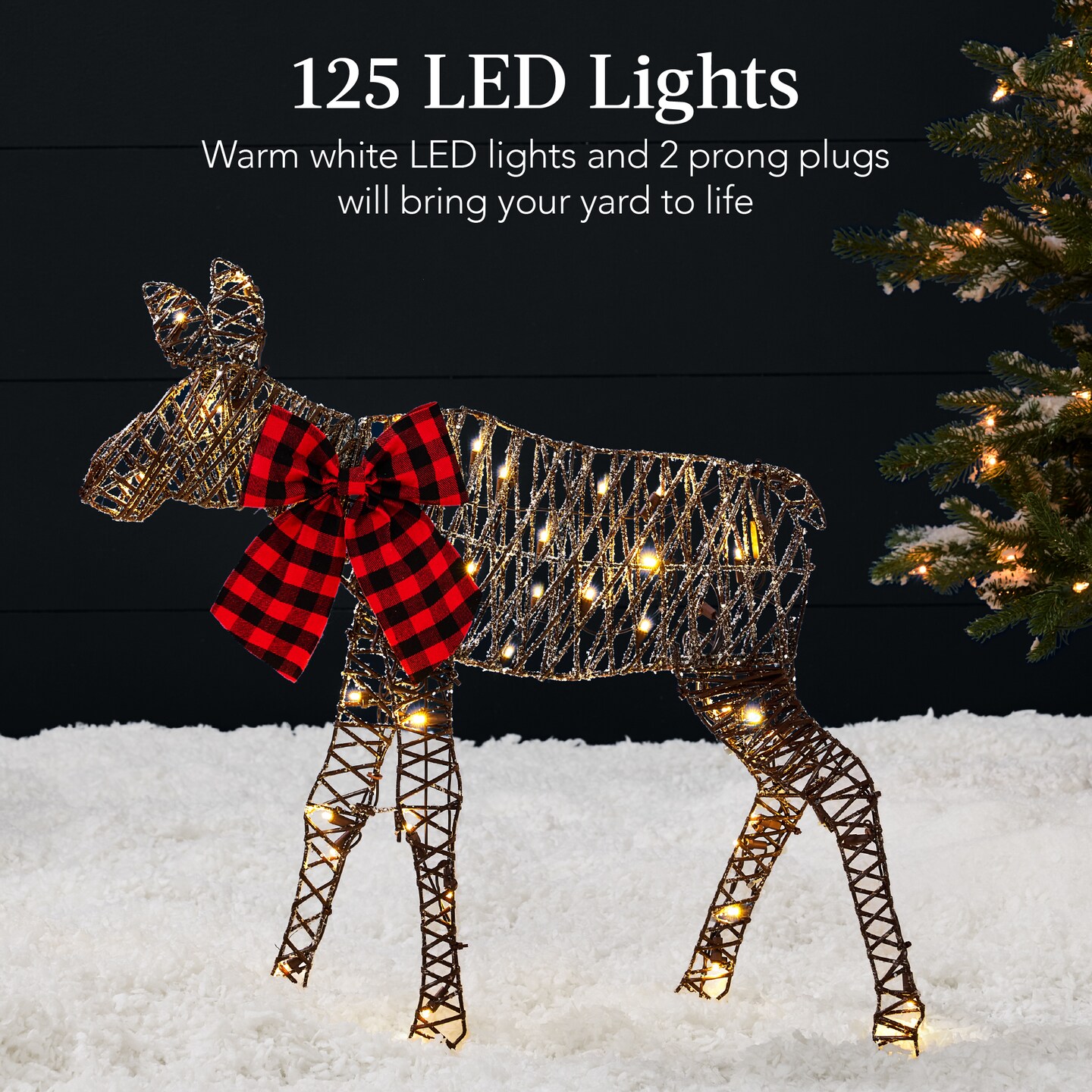 Best Choice Products 4ft 2-Piece Lighted 2D Christmas Moose Set Outdoor Décor w/ 125 LED Lights, Stakes