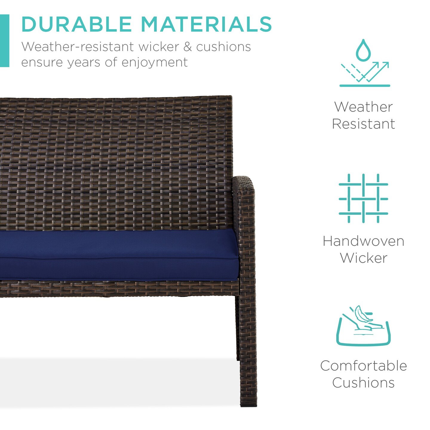 Best Choice Products 4-Piece Outdoor Wicker Patio Conversation Furniture Set w/ Table, Cushions