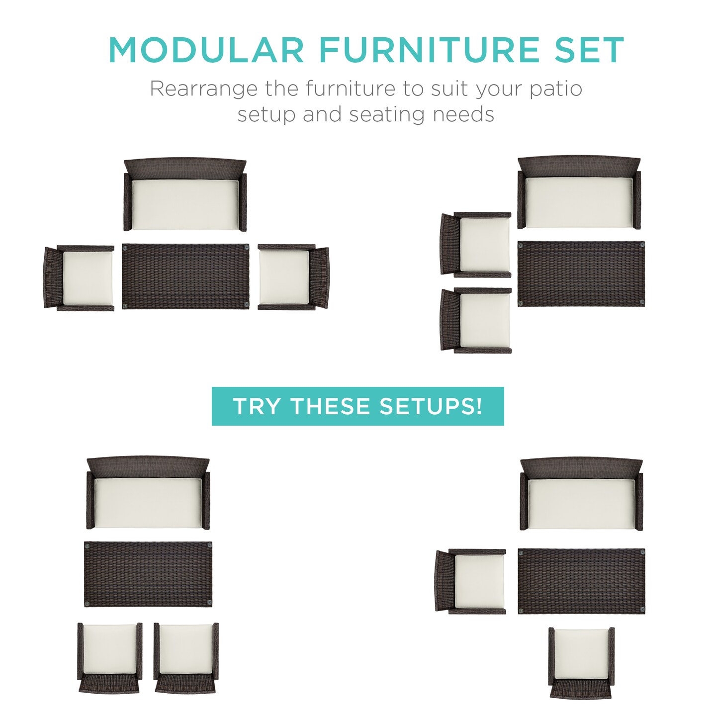 Best Choice Products 4-Piece Outdoor Wicker Patio Conversation Furniture Set w/ Table, Cushions