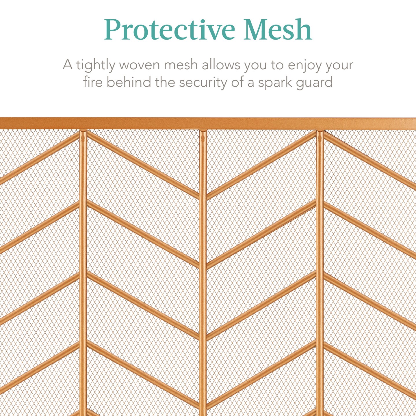 Best Choice Products 52x31in 3-Panel Iron Chevron Fireplace Screen, Spark Guard w/ Handles