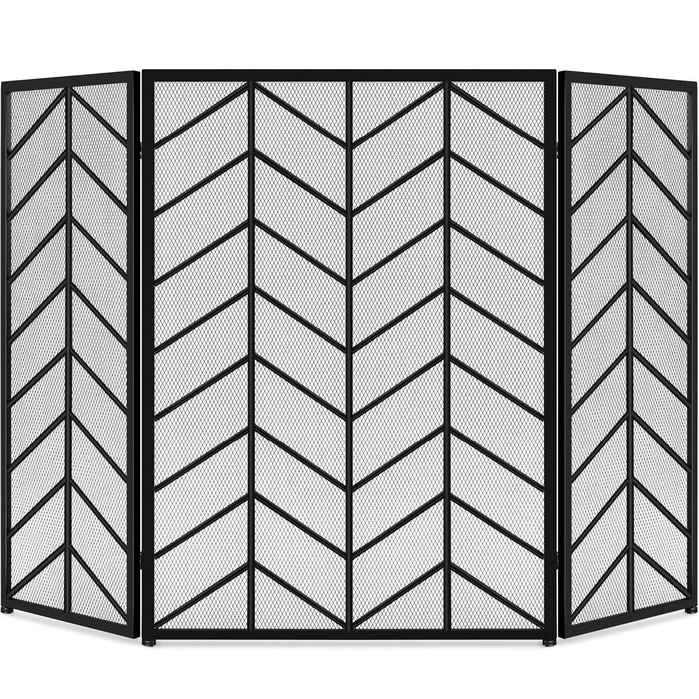 Best Choice Products 52x31in 3-Panel Iron Chevron Fireplace Screen, Spark Guard w/ Handles