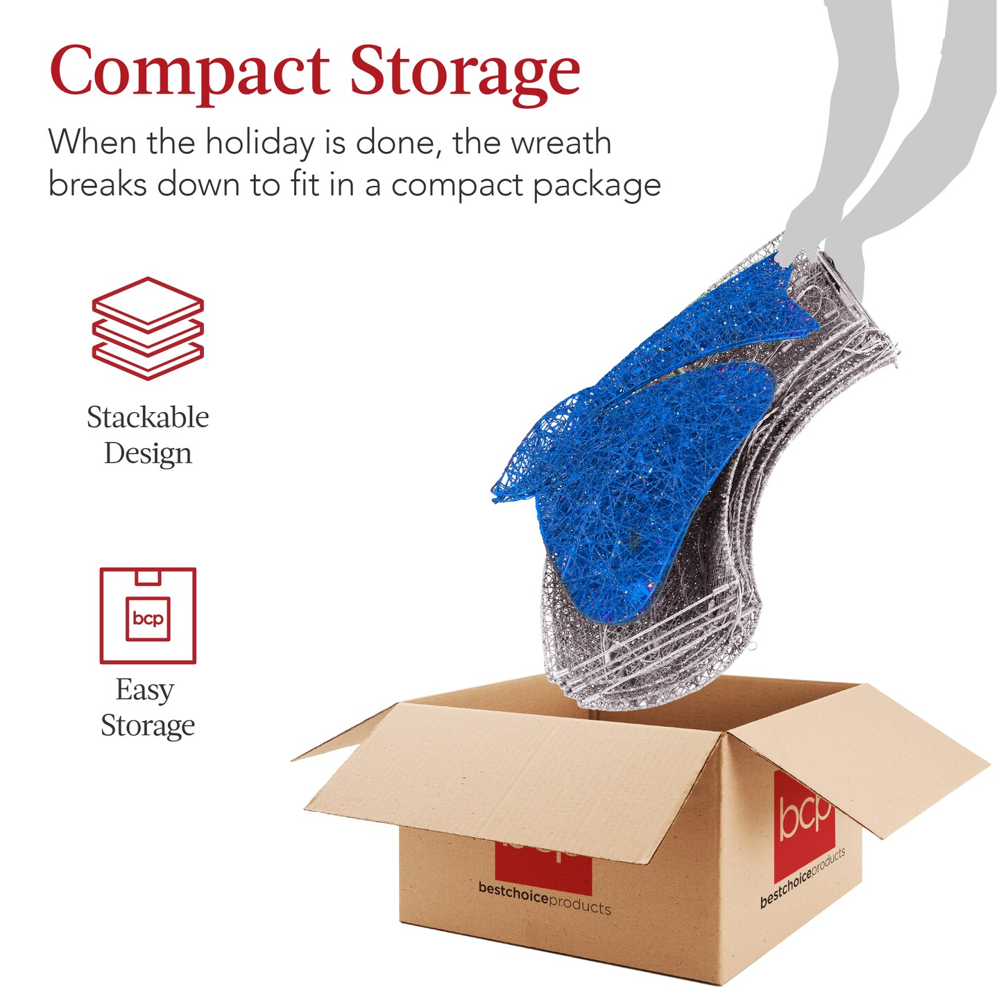 Best Choice Products 60in Pre-Lit Outdoor Christmas Wreath, LED Metal Holiday Décor w/ 206 Lights, Bow