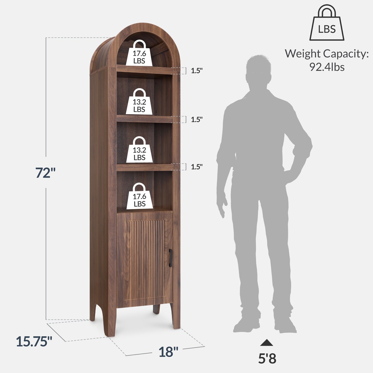 Best Choice Products 72 Tall Narrow Storage Cabinet w/ Adjustable Shelves, 4-Tier Modern Arched Bookcase"