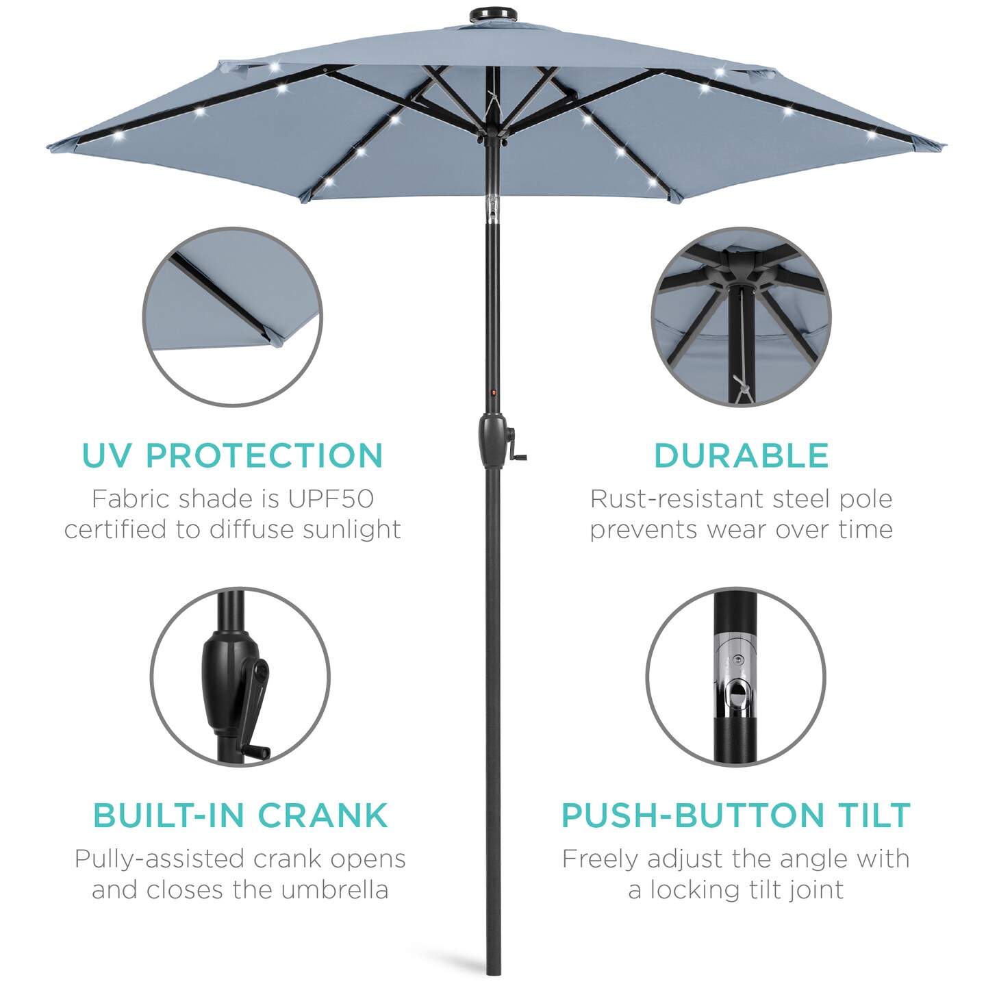 Best Choice Products 7.5ft Outdoor Solar Patio Umbrella for Deck, Pool w/ Tilt, Crank, LED Lights