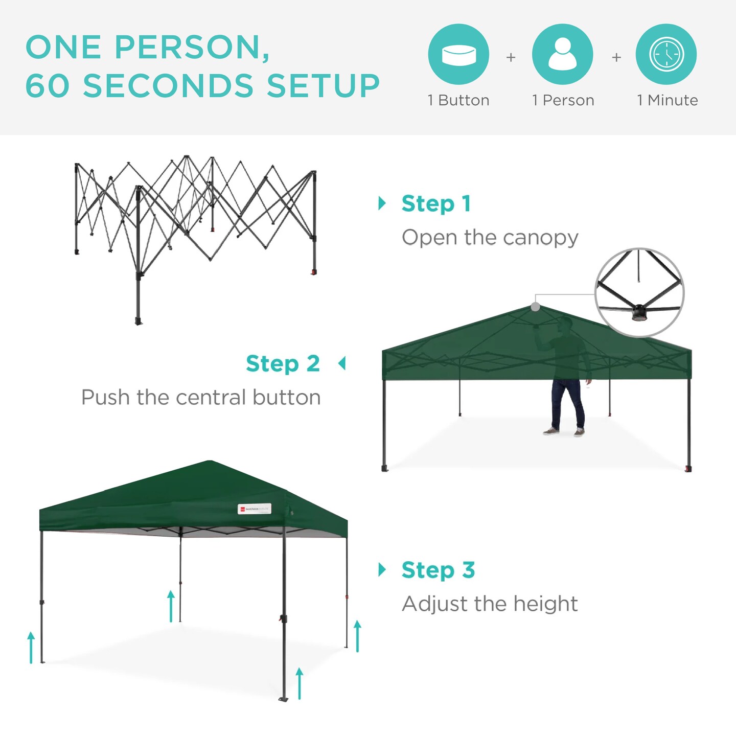 Best Choice Products 8x8ft Easy Setup Pop Up Canopy w/ 1-Button Setup, Wheeled Case, 4 Weight Bags