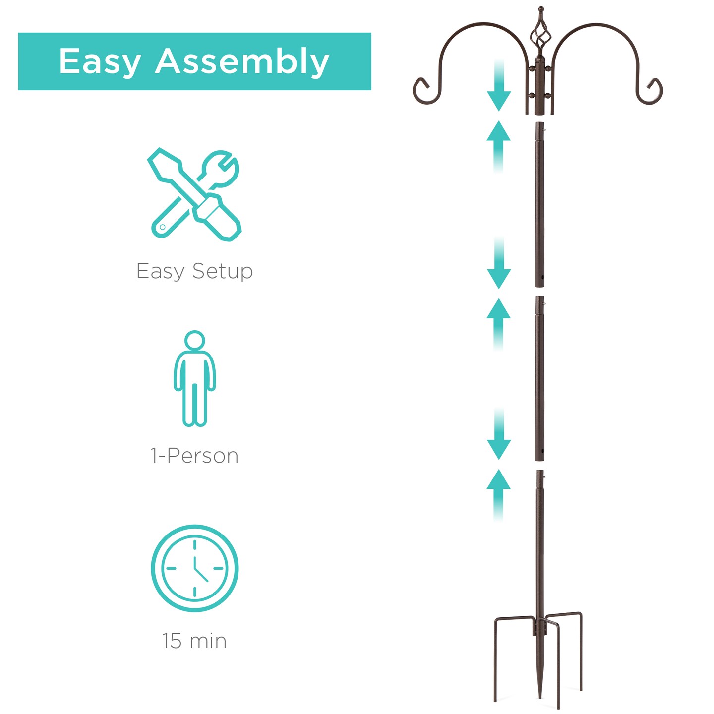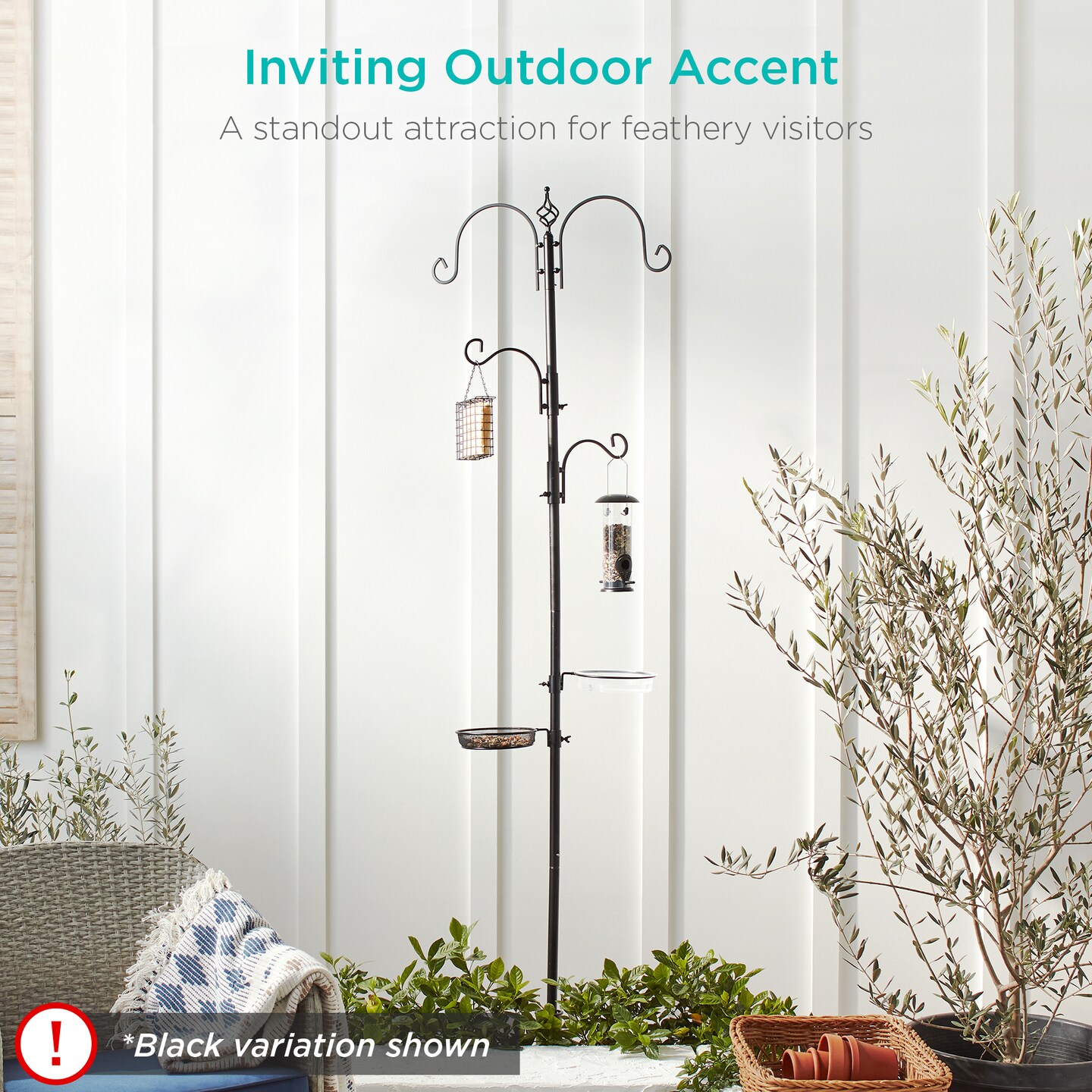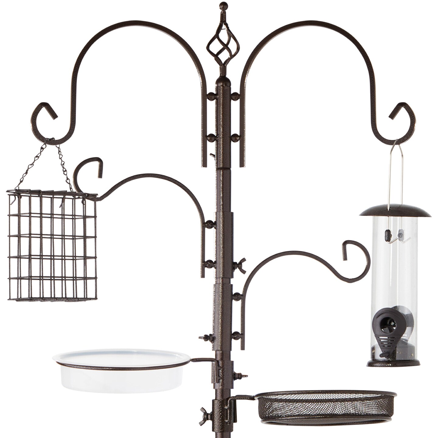 Best Choice Products 91in 4-Hook Bird Feeding Station, Steel Multi-Feeder Stand w/ 2 Feeders, Tray, Bird Bath