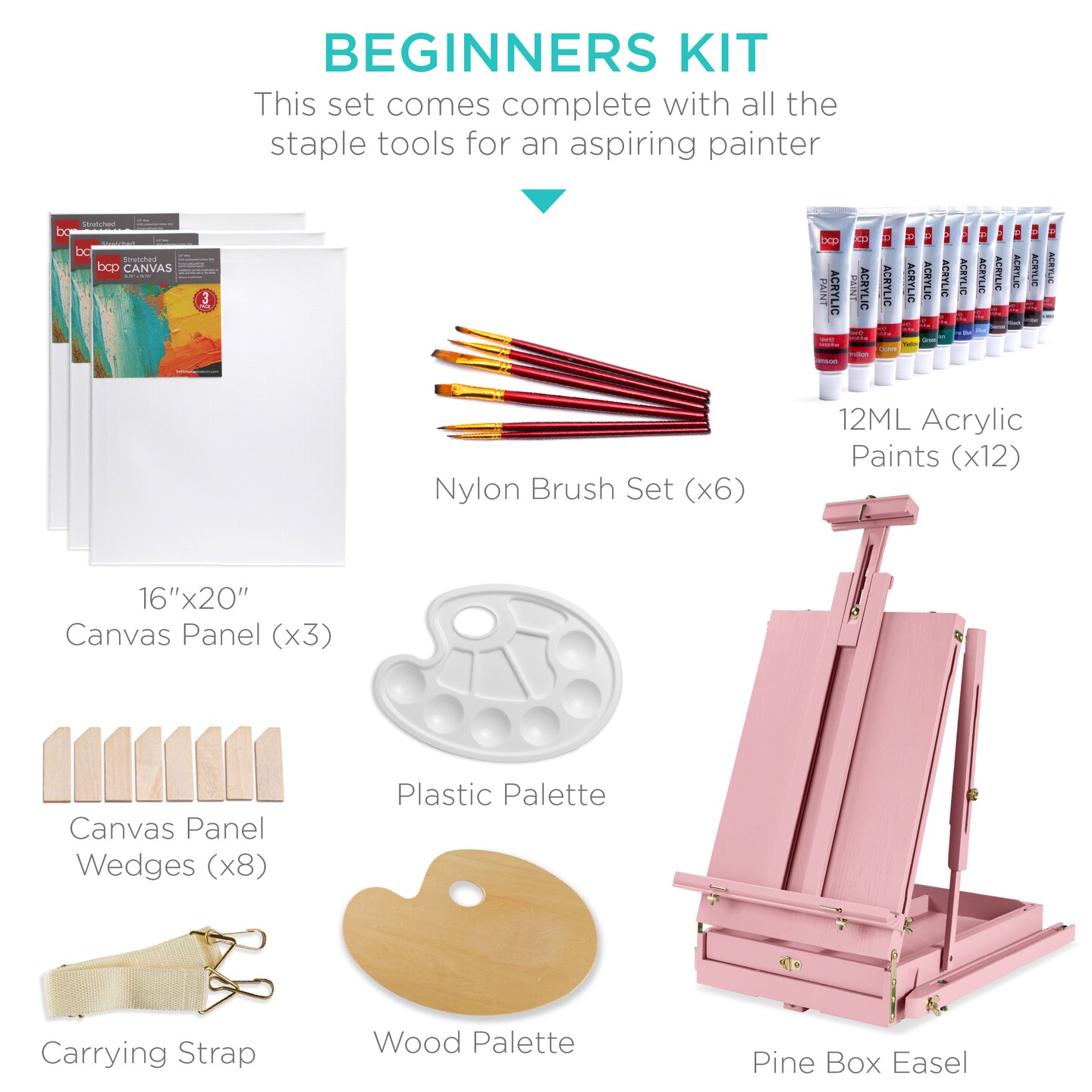 Best Choice Products French Easel, 32pc Beginners Kit Portable Wooden Adjustable Tripod w/ Paint Supplies