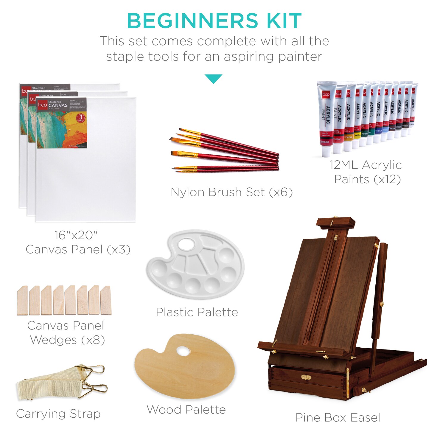 Best Choice Products French Easel, 32pc Beginners Kit Portable Wooden Adjustable Tripod w/ Paint Supplies