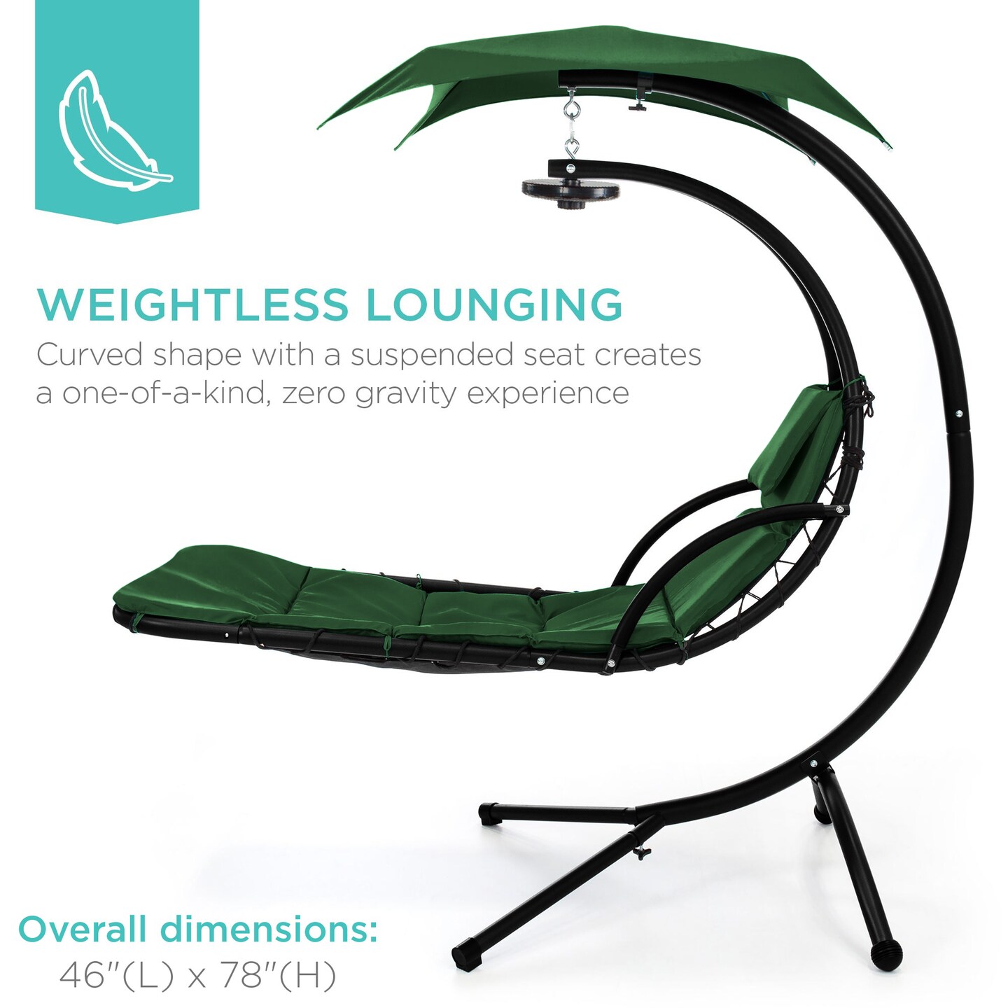 Best Choice Products Hanging LED-Lit Curved Chaise Lounge Chair for Backyard, Patio w/ Pillow, Canopy, Stand