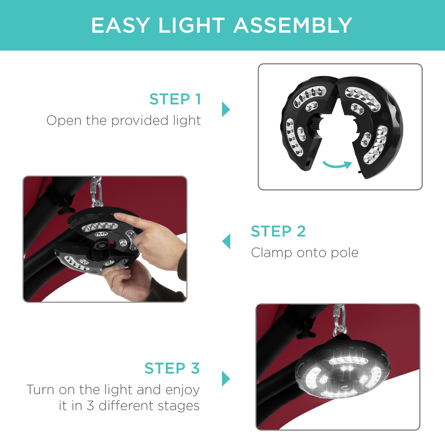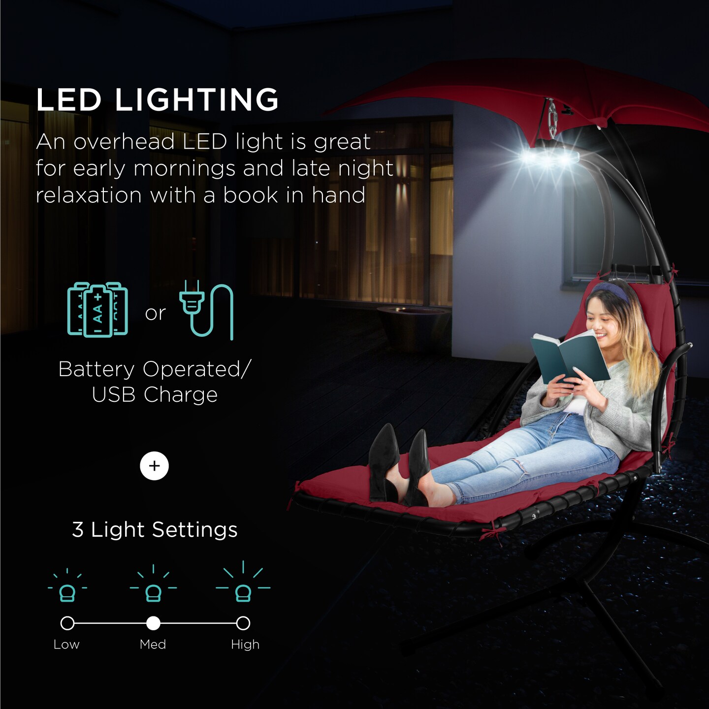 Best Choice Products Hanging LED-Lit Curved Chaise Lounge Chair for Backyard, Patio w/ Pillow, Canopy, Stand