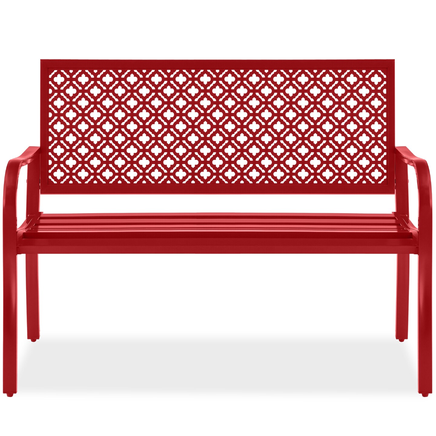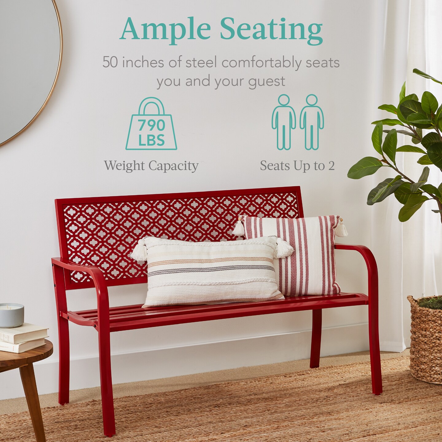 Best Choice Products Indoor Outdoor Steel Garden Bench w/ Geometric Backrest, Foot Levelers