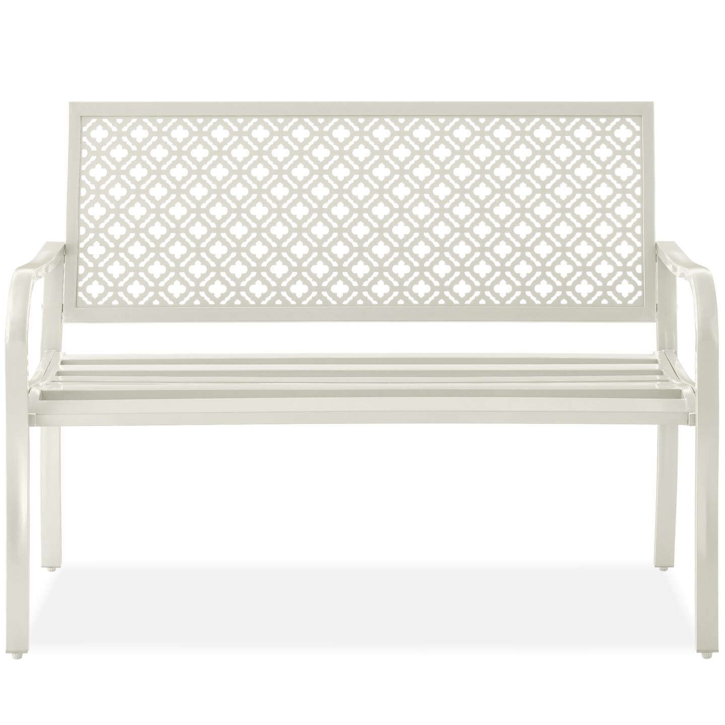 Best Choice Products Indoor Outdoor Steel Garden Bench w/ Geometric Backrest, Foot Levelers