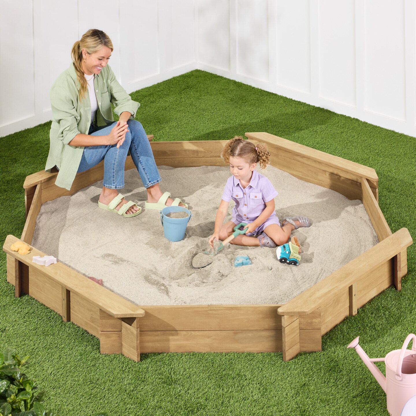 Best Choice Products Kid's Octagonal Wooden Outdoor Sandbox w/ Benches, 8 Seats, Cover, XL Sandpit, Liner