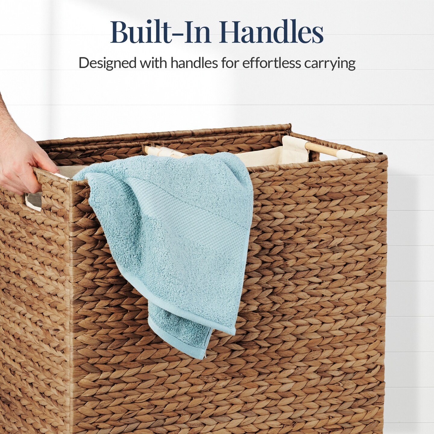 Best Choice Products Large Natural Water Hyacinth Double Laundry Hamper Basket w/ 2 Liner Bags, Handles