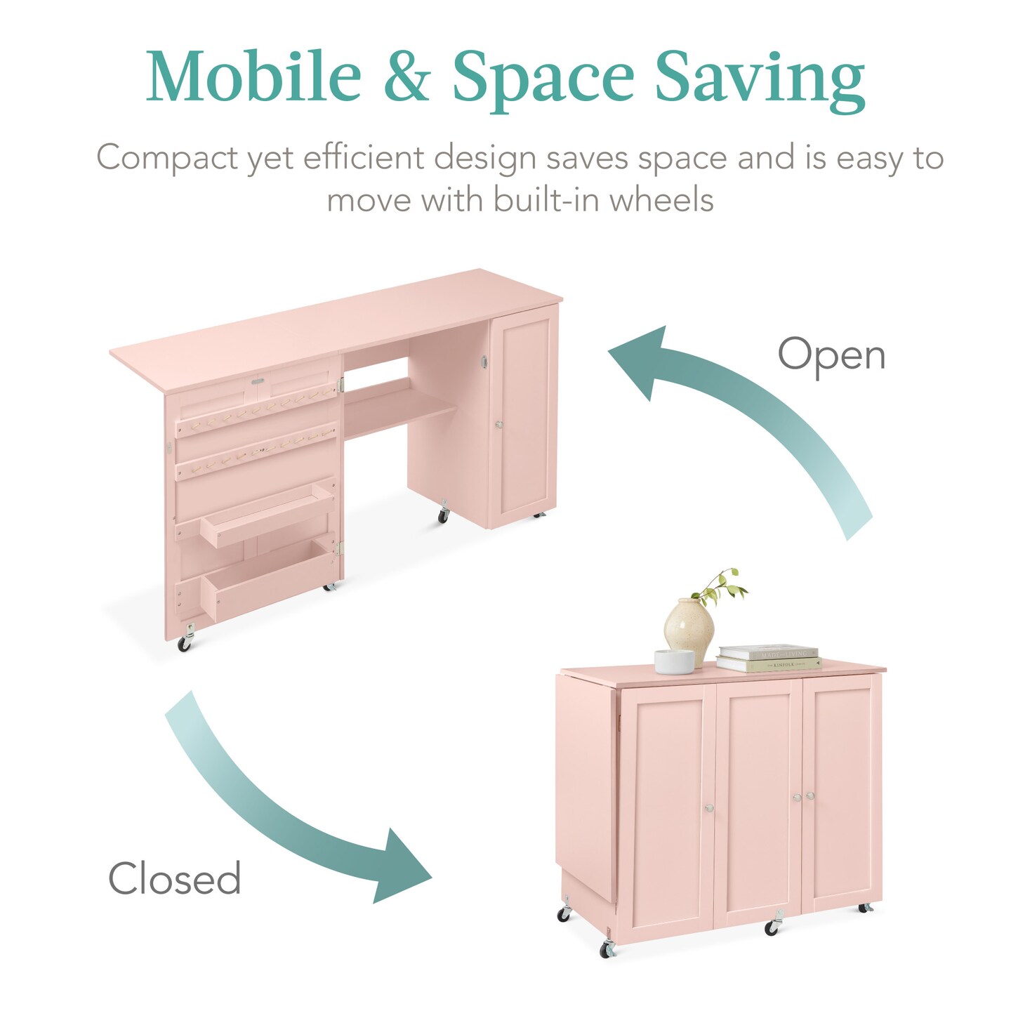 Best Choice Products Large Portable Multipurpose Folding Sewing Table w/ Magnetic Doors, Craft Storage