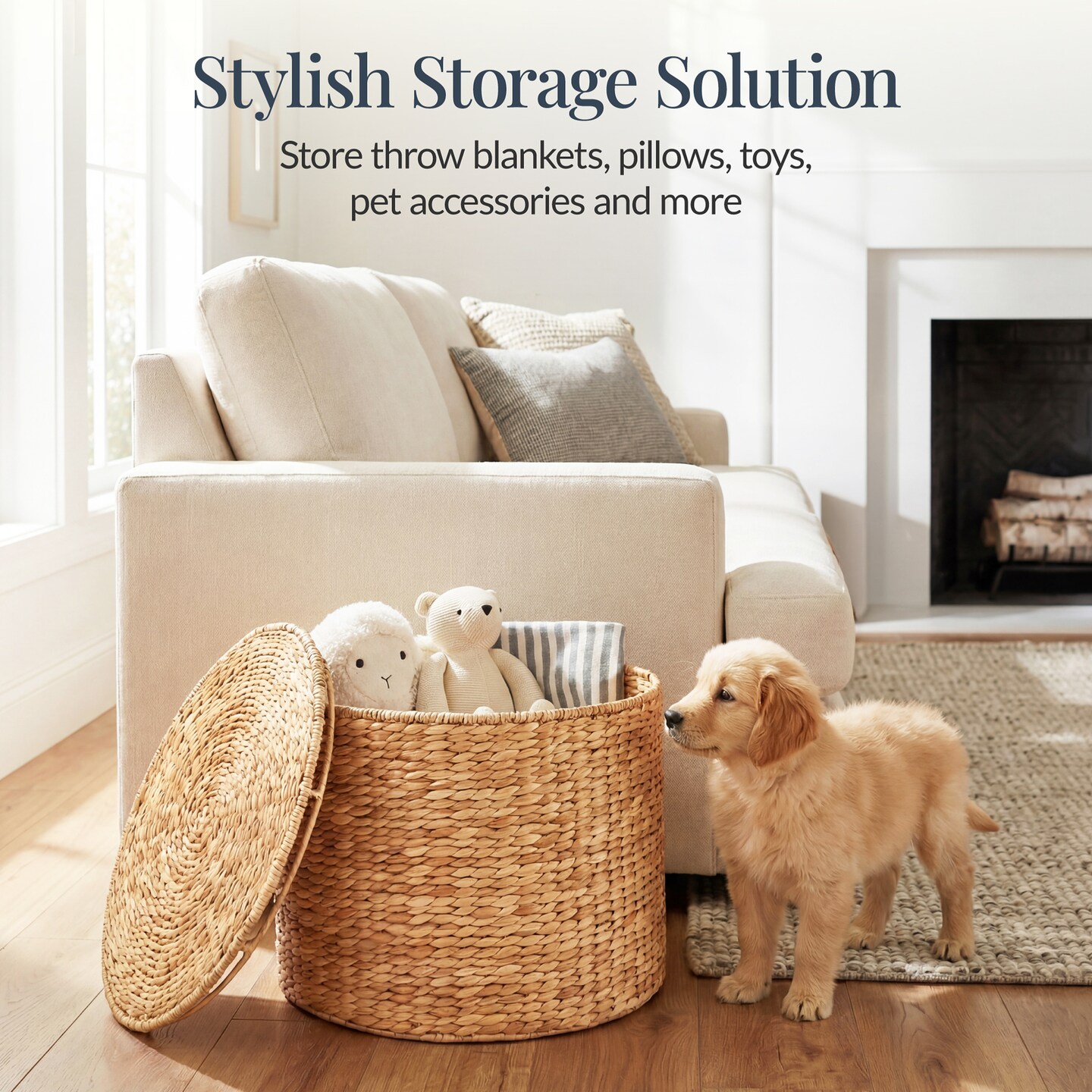 Best Choice Products Large Round Storage Ottoman W/ Lid, Handwoven Water Hyacinth Footstool