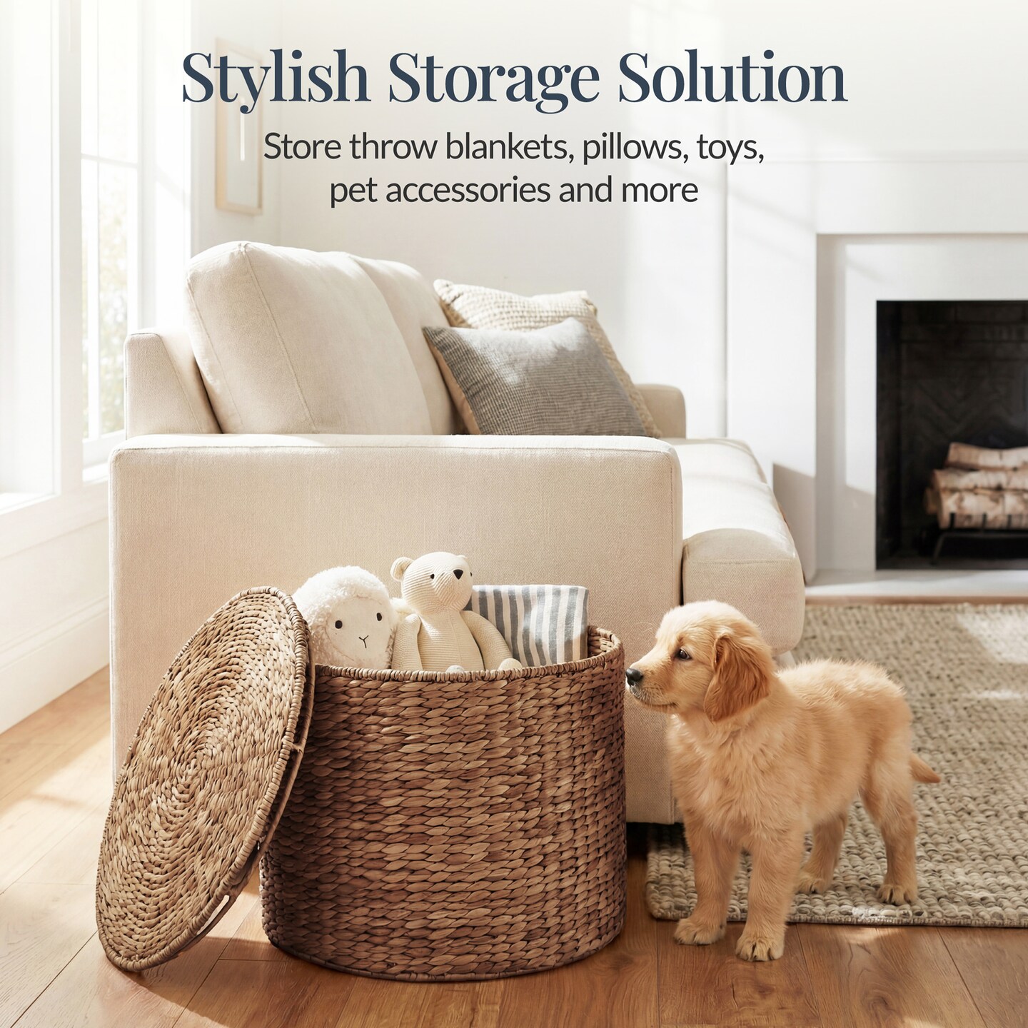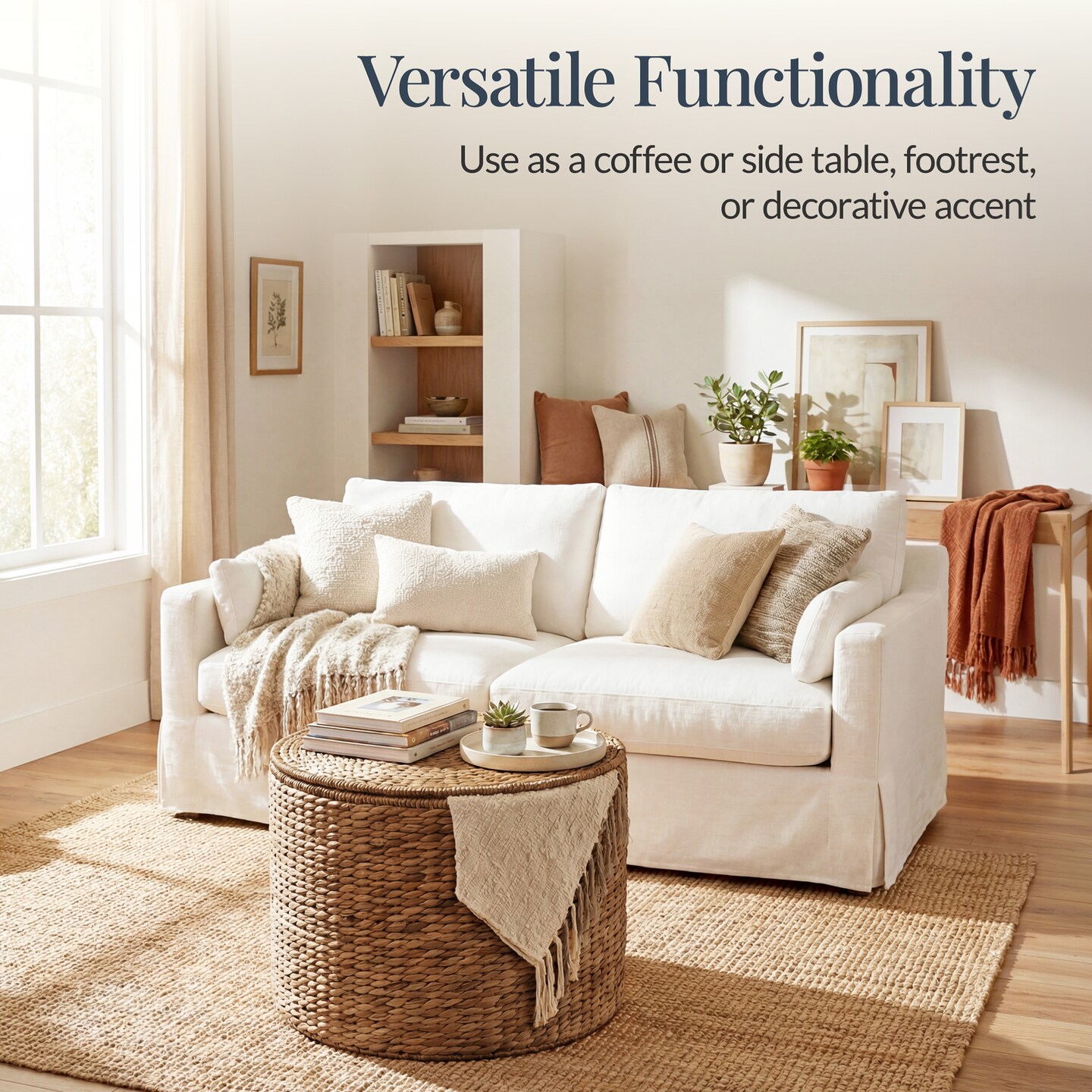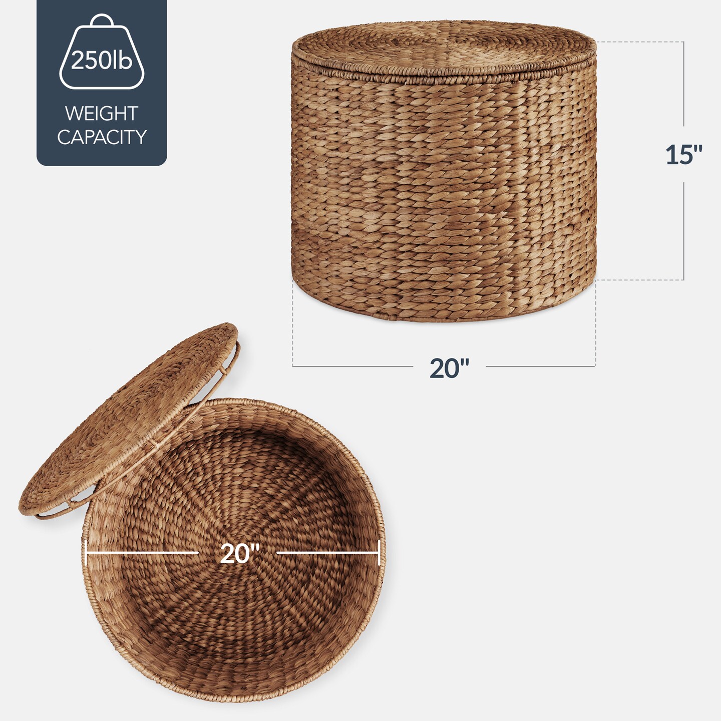 Best Choice Products Large Round Storage Ottoman W/ Lid, Handwoven Water Hyacinth Footstool