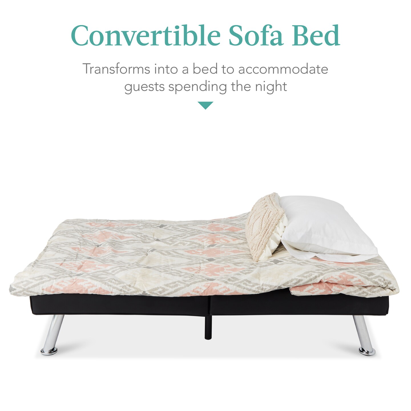 Best Choice Products Modern Faux Leather Convertible Futon Sofa w/ Removable Armrests, 2 Cupholders