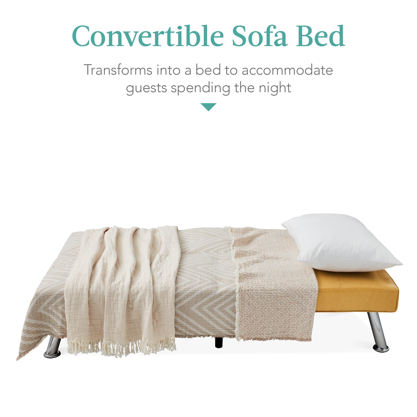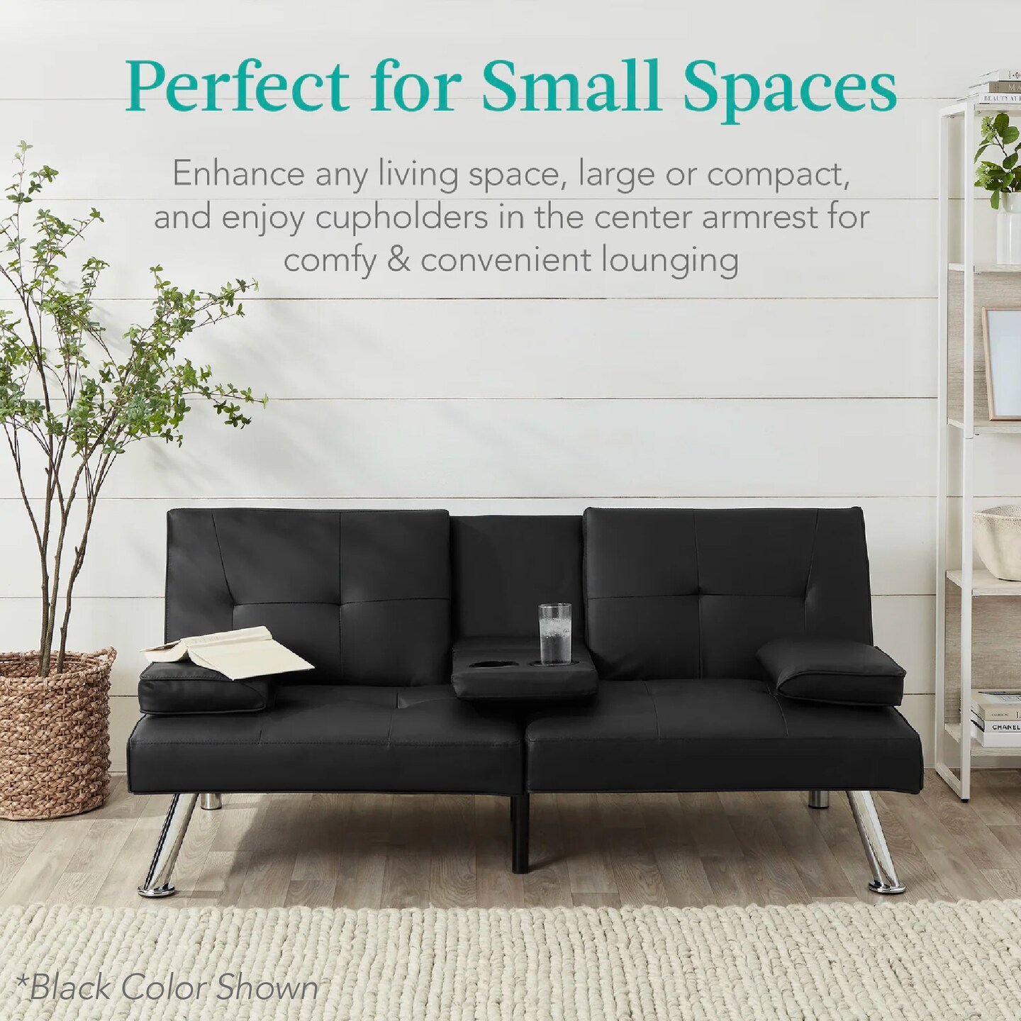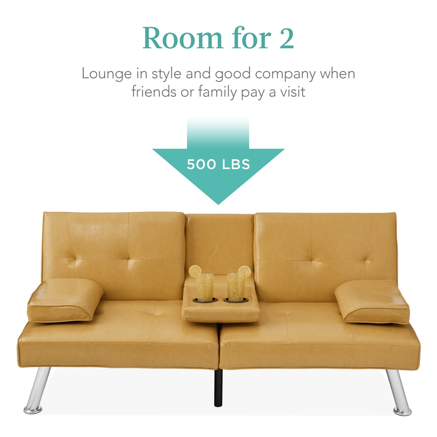 Best Choice Products Modern Faux Leather Convertible Futon Sofa w/ Removable Armrests, 2 Cupholders