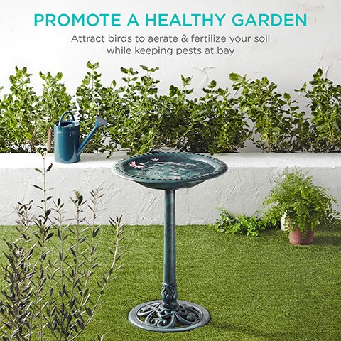 Best Choice Products Outdoor Rustic Pedestal Bird Bath Accent for Garden, Yard w/ Fleur-de-Lis Accents