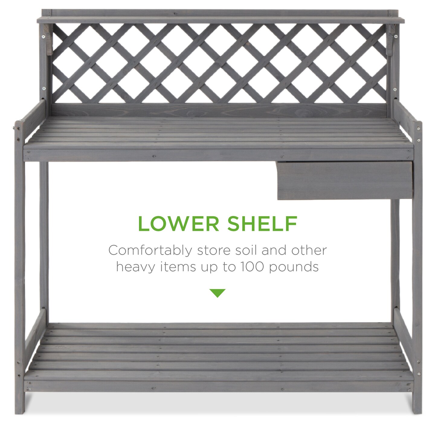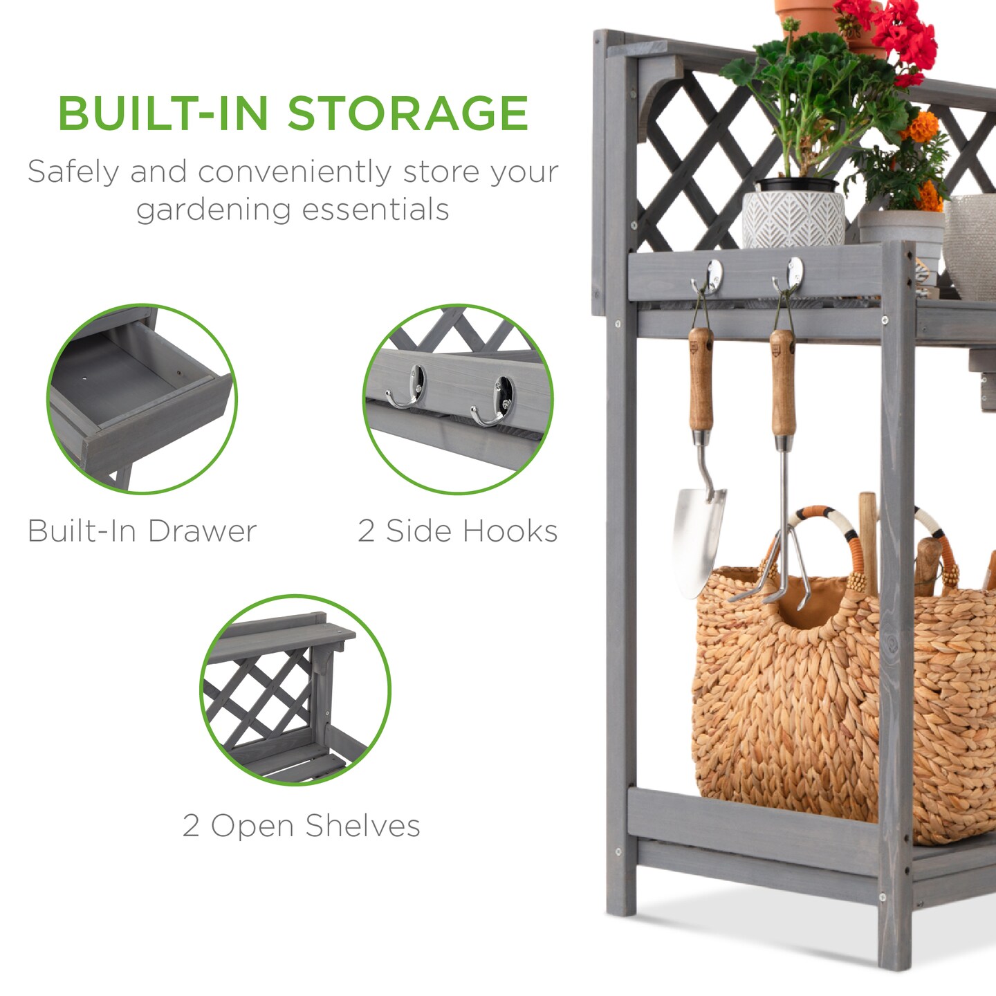 Best Choice Products Outdoor Wooden Garden Potting Bench, Workstation Table w/ Cabinet Drawer, Open Shelf