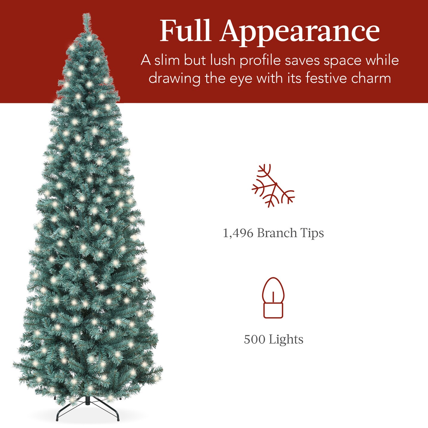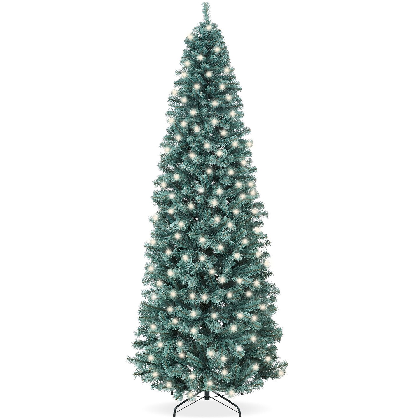 Best Choice Products Pre-Lit Blue Spruce Pencil Christmas Tree w/ Foldable Base