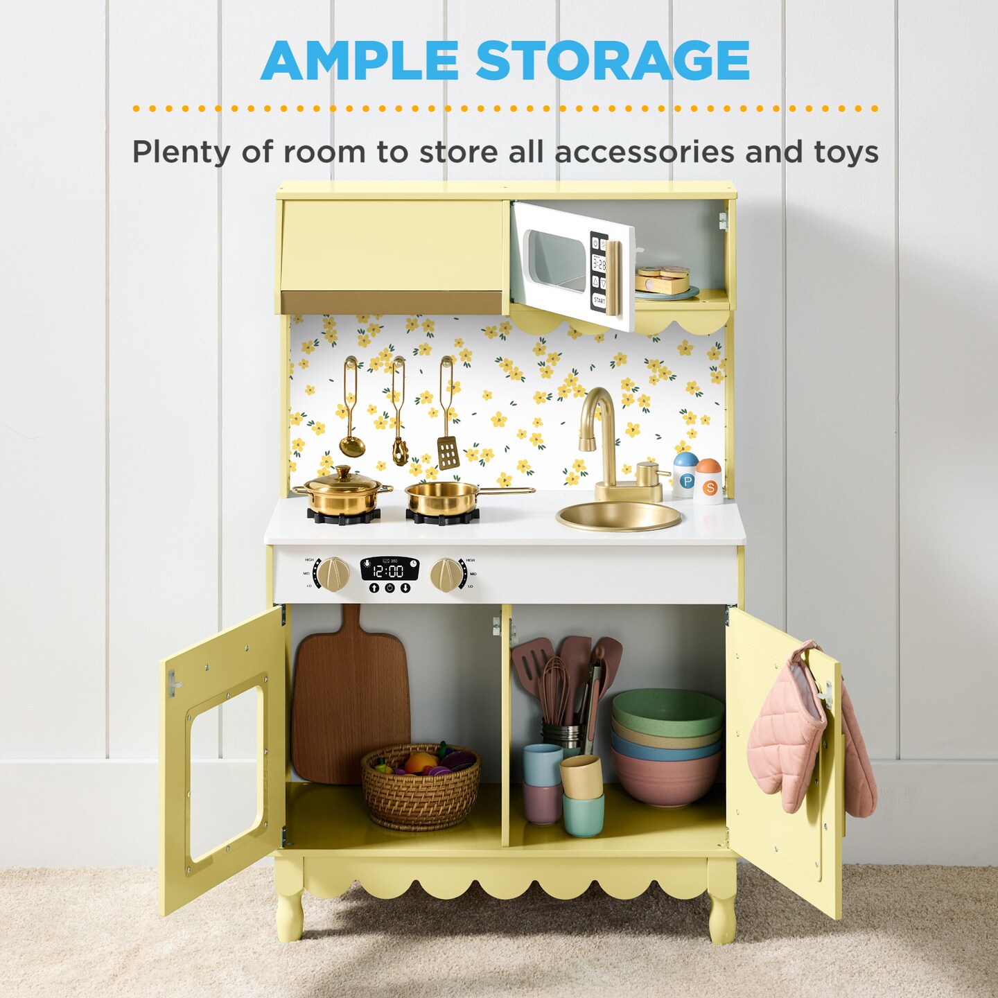 Best Choice Products Pretend Play Cottage Kitchen Wooden Toy Set for Kids w/ 5 Accessories, Oven
