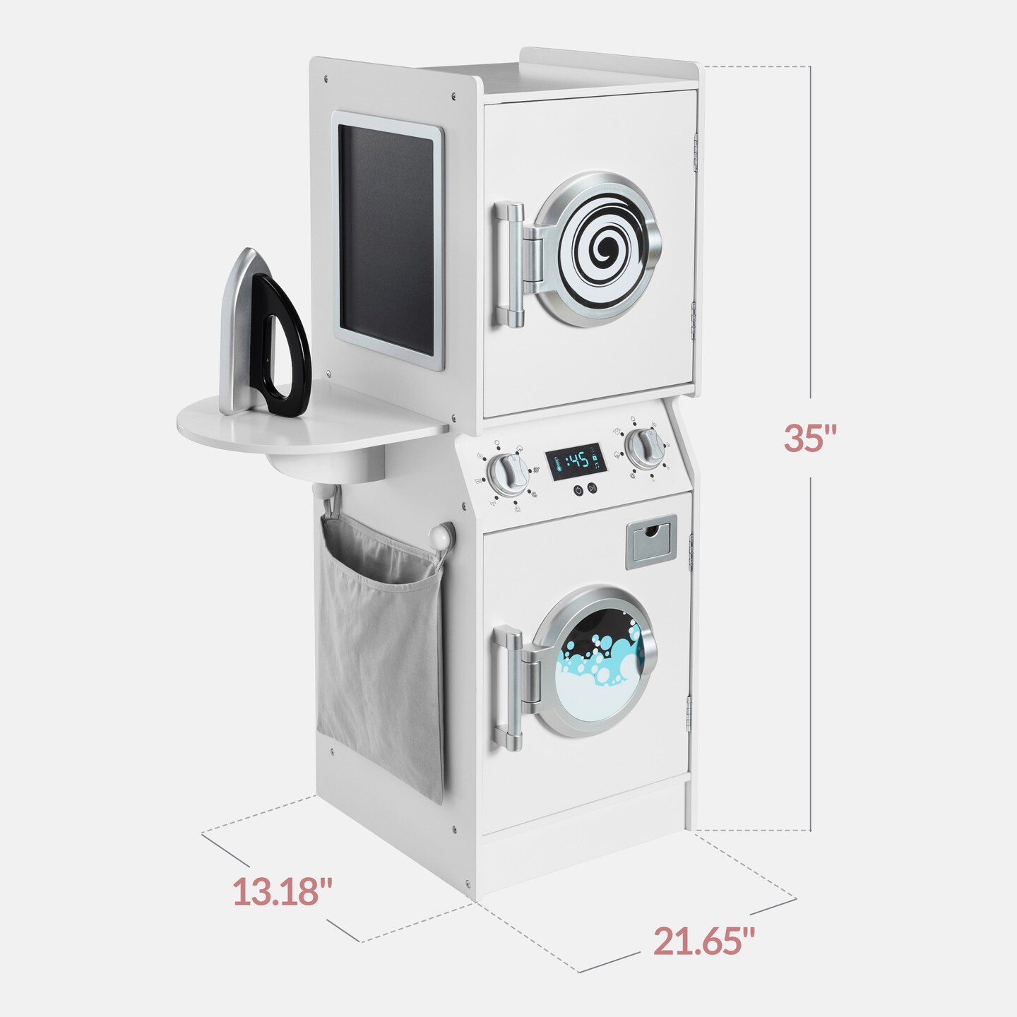 Best Choice Products Pretend Play Kids Wooden Stacked Washer & Dryer Set w/ Toy Laundry Storage and Accessories