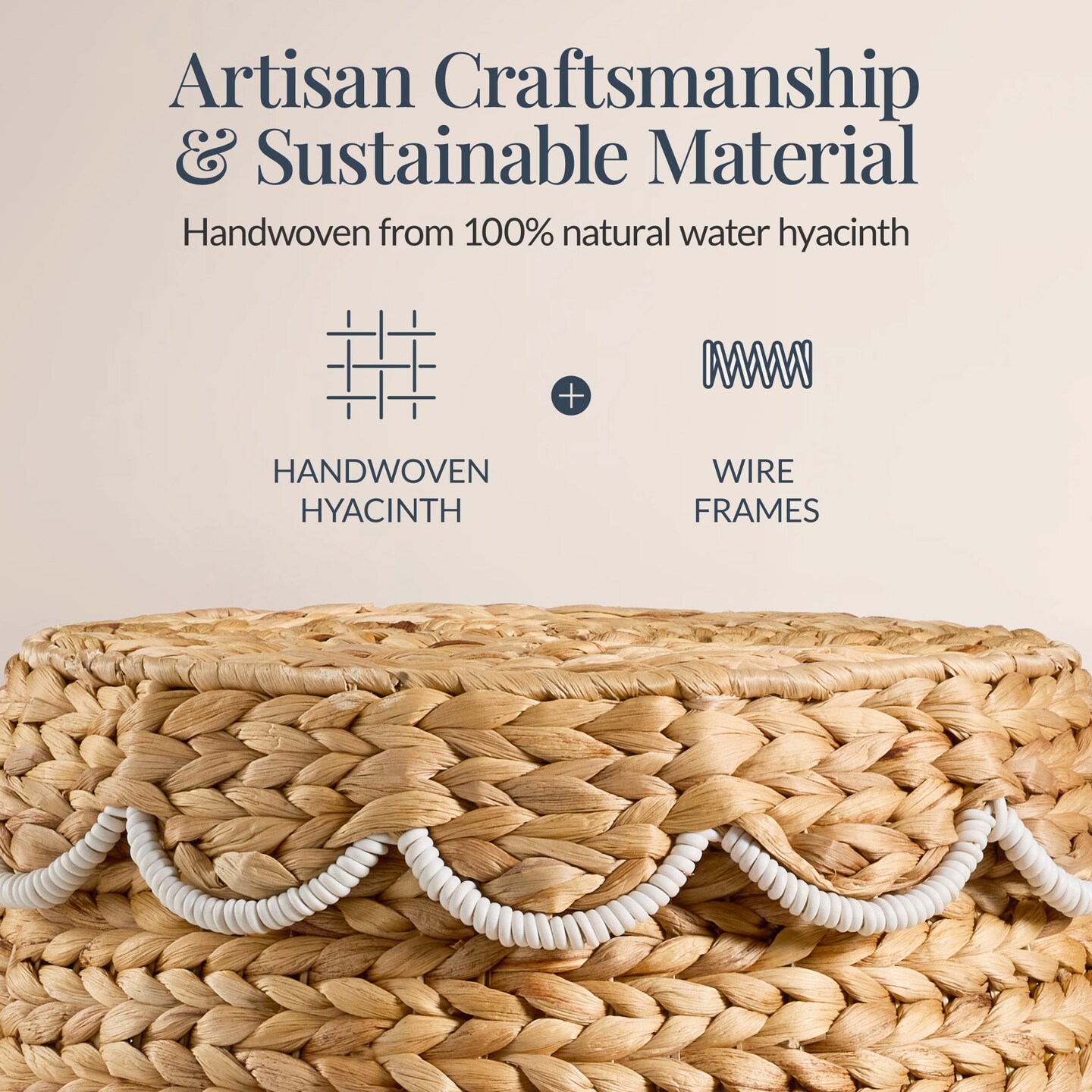 Best Choice Products Scalloped Water Hyacinth Storage Tote Basket with Lid