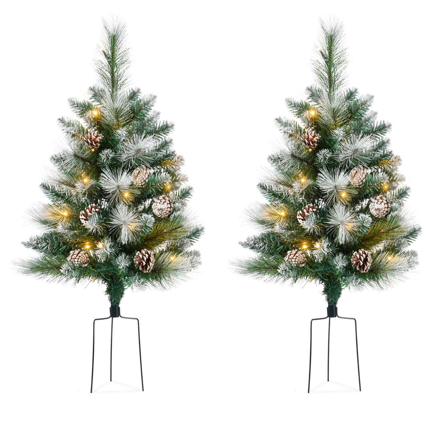 Best Choice Products Set of 2 24.5in Outdoor Pathway Christmas Trees Decor w/ LED Lights