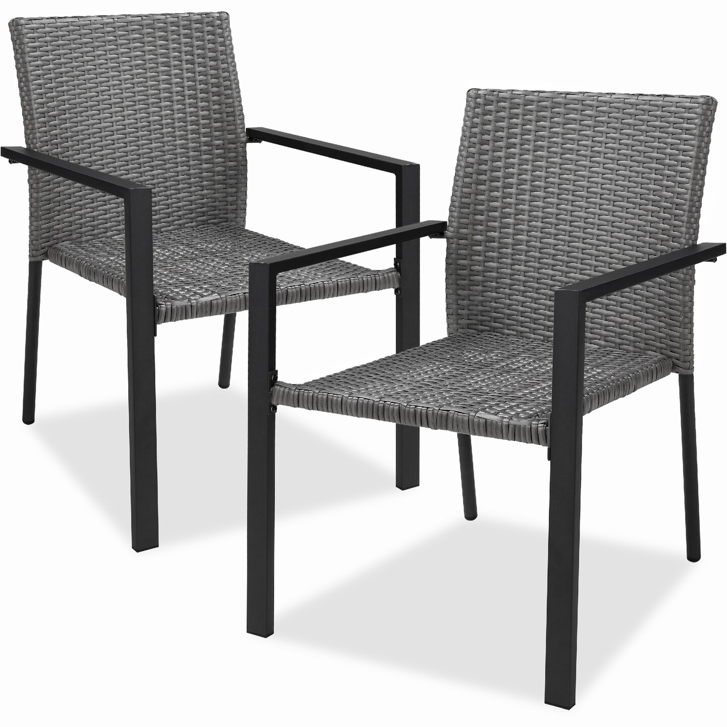 Best Choice Products Set of 2 Wicker Chairs, Stackable Outdoor Dining Furniture w/ Armrests