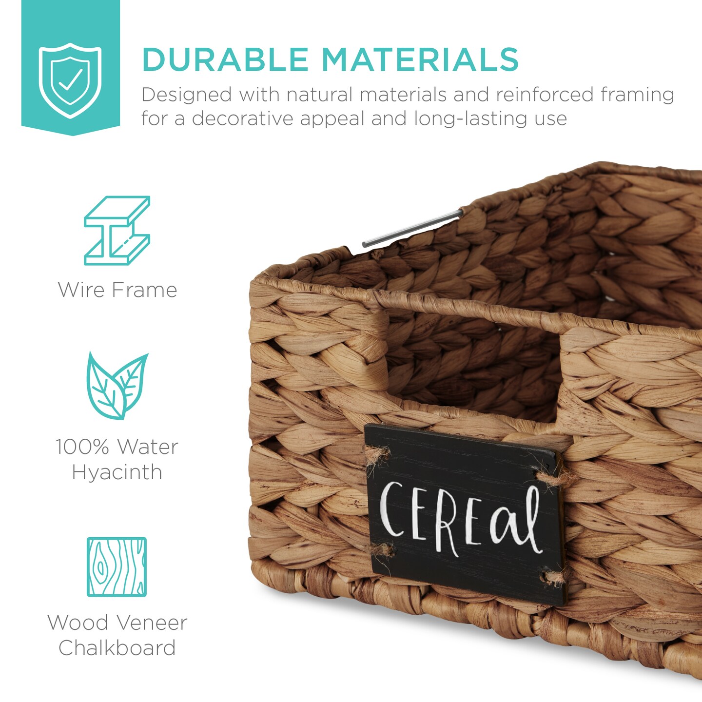 Best Choice Products Set of 4 12in Woven Water Hyacinth Pantry Baskets w/ Chalkboard Label, Chalk Marker