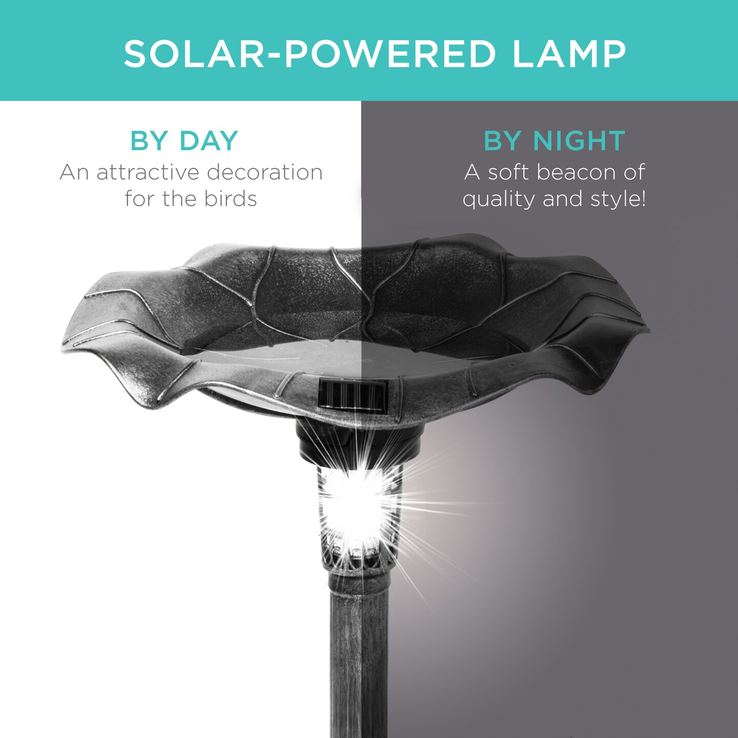 Best Choice Products Solar Lighted Pedestal Bird Bath w/ Planter, Integrated Panel