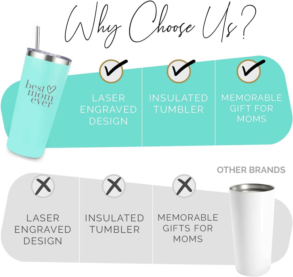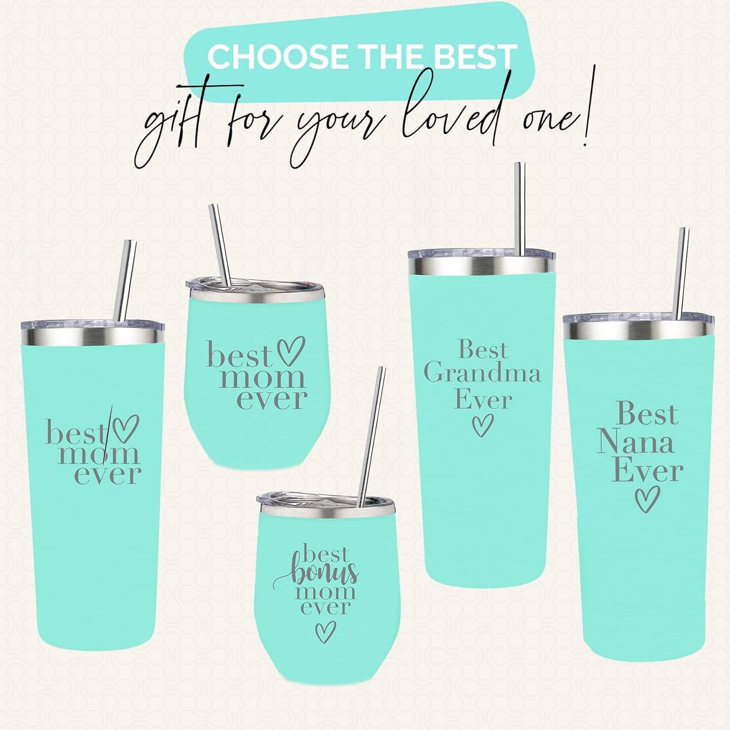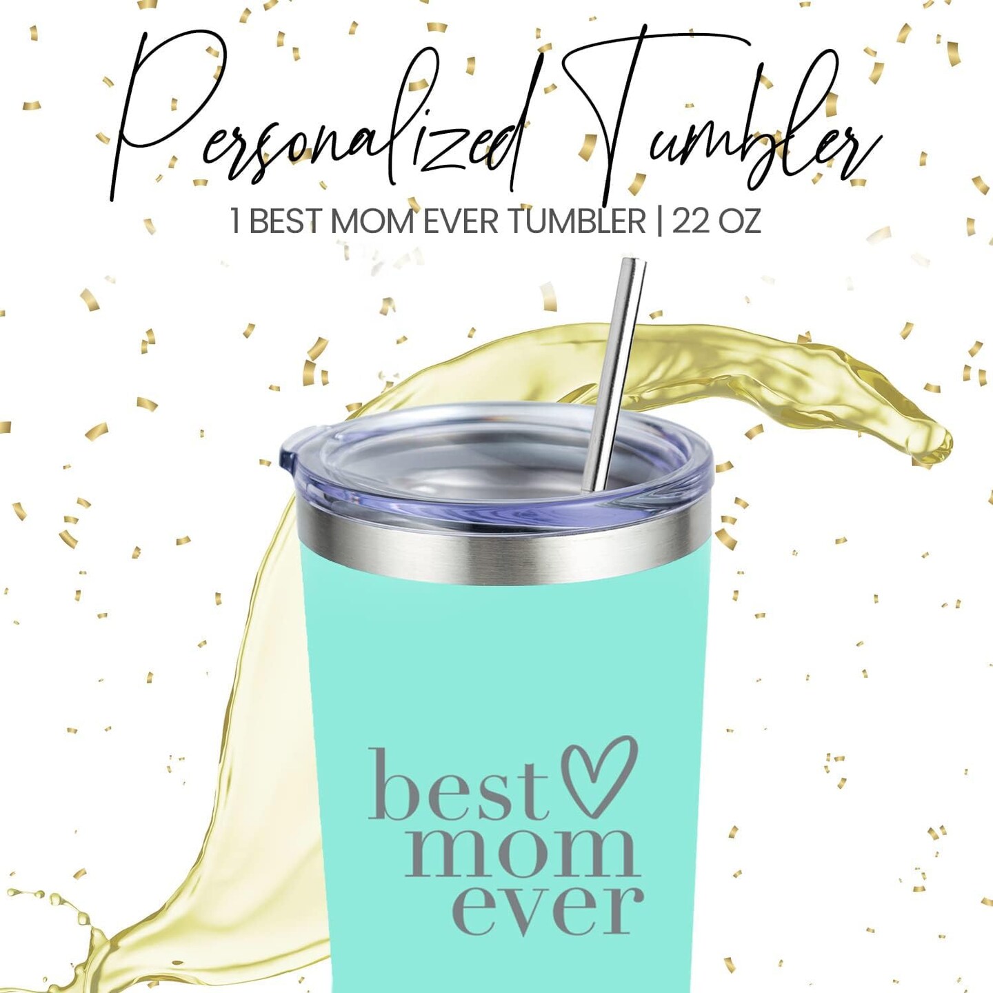 Best Mom Ever Gifts Tumbler - Stainless Steel 22 Oz Mint Green Best Mom Tumbler with Straw and Lid - Ideal Mothers Day Gift, Coffee & Water Bottle for New Moms - Best Mom Cup Present