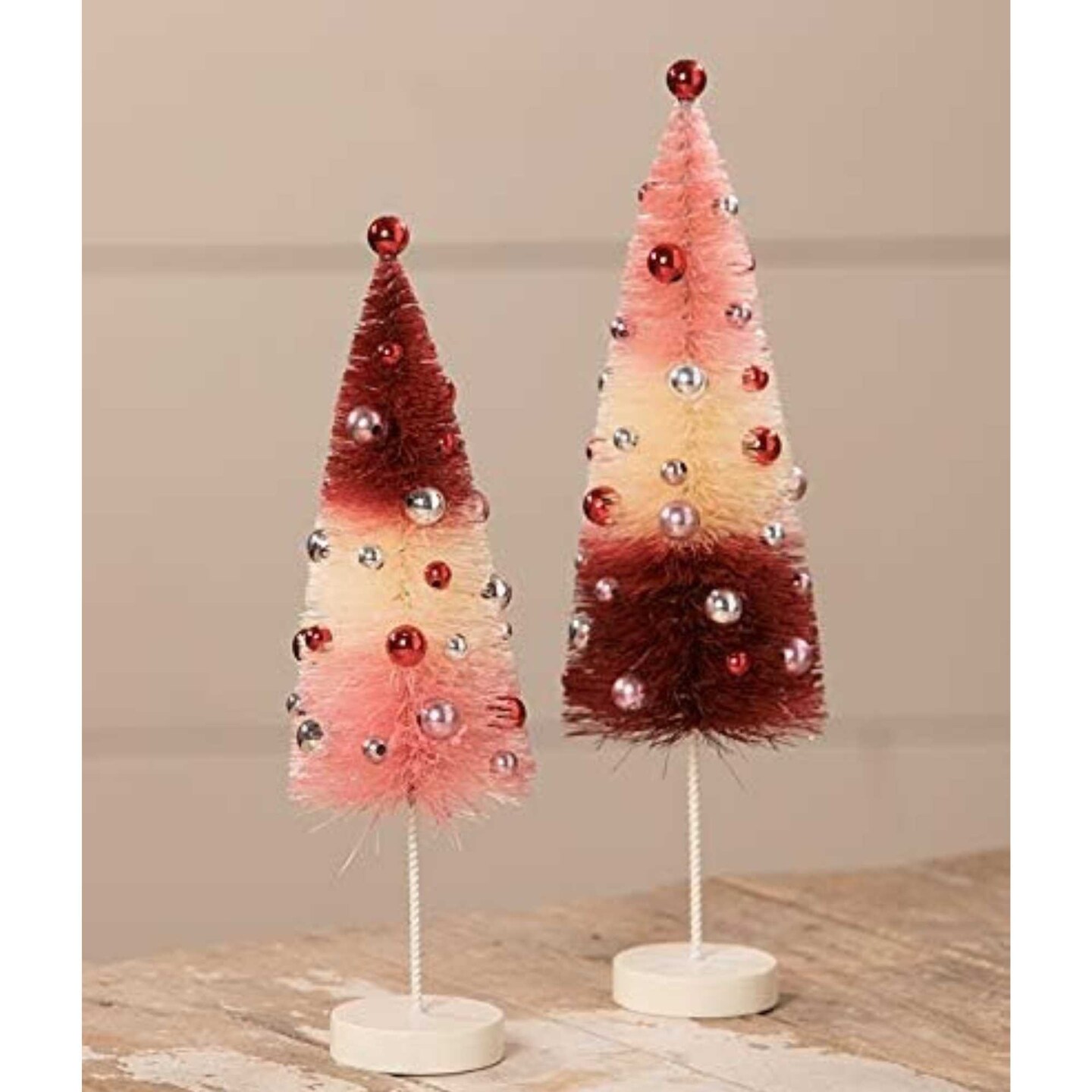 Bethany Lowe 11.0 Inch Valentine Tricolored Trees Valentine Decorative Tree Set , Multi Seasonal Decor Romance Beads Love