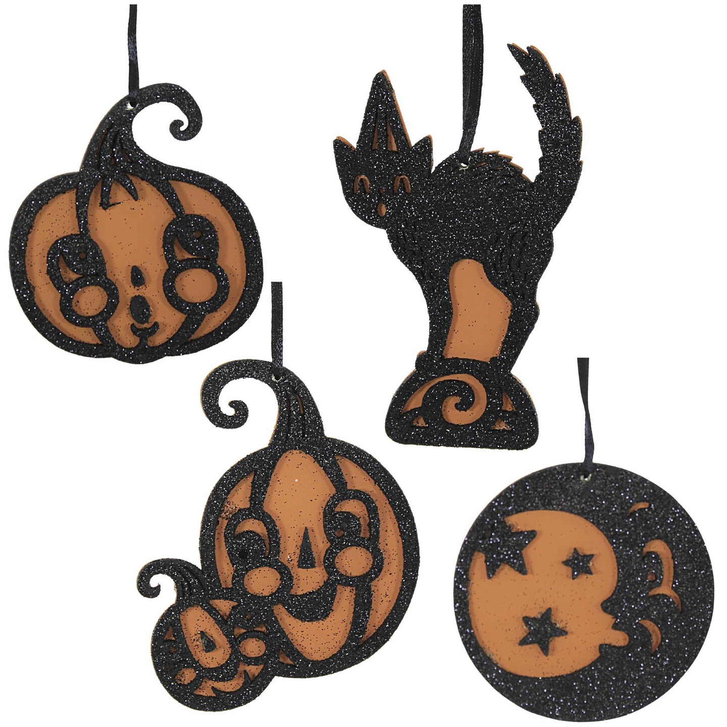 Bethany Lowe 4.75 In Jolly Halloween Ornaments Halloween Tree Ornament , Halloween Decor Black Cat Pumpkin Moon