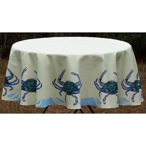 Betsy Drake Blue Crab 68 Inch Round Table Cloth