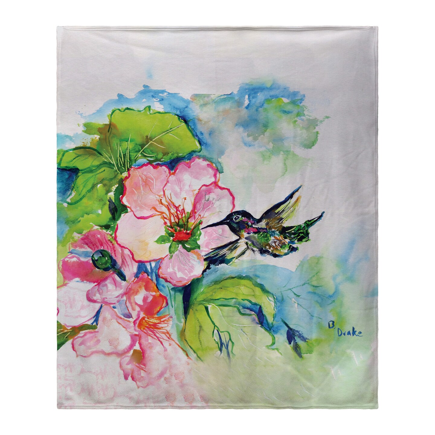 Betsy Drake Hummingbird & Hibiscus Fleece Blanket