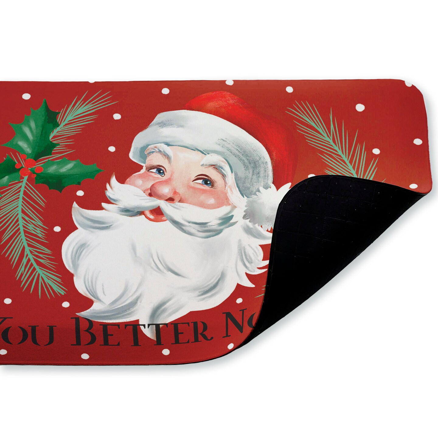 Better Not Pout Vintage Santa Printed Anti-Fatigue Floor Mat, 18x30, Made in USA - Holiday Ready