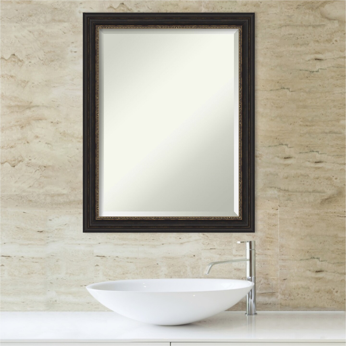 Beveled Bathroom Wall Mirror, Accent Bronze Narrow Frame