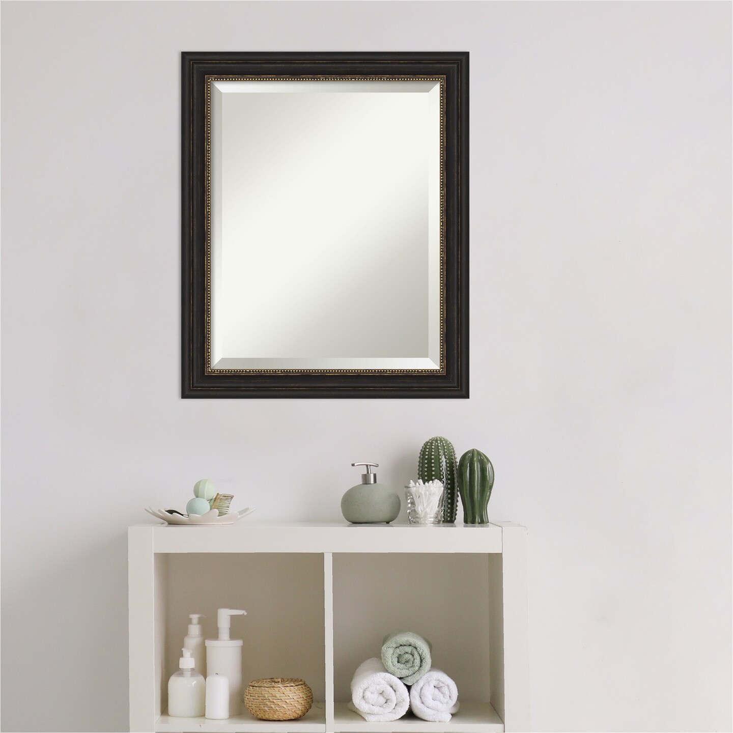 Beveled Bathroom Wall Mirror, Accent Bronze Narrow Frame