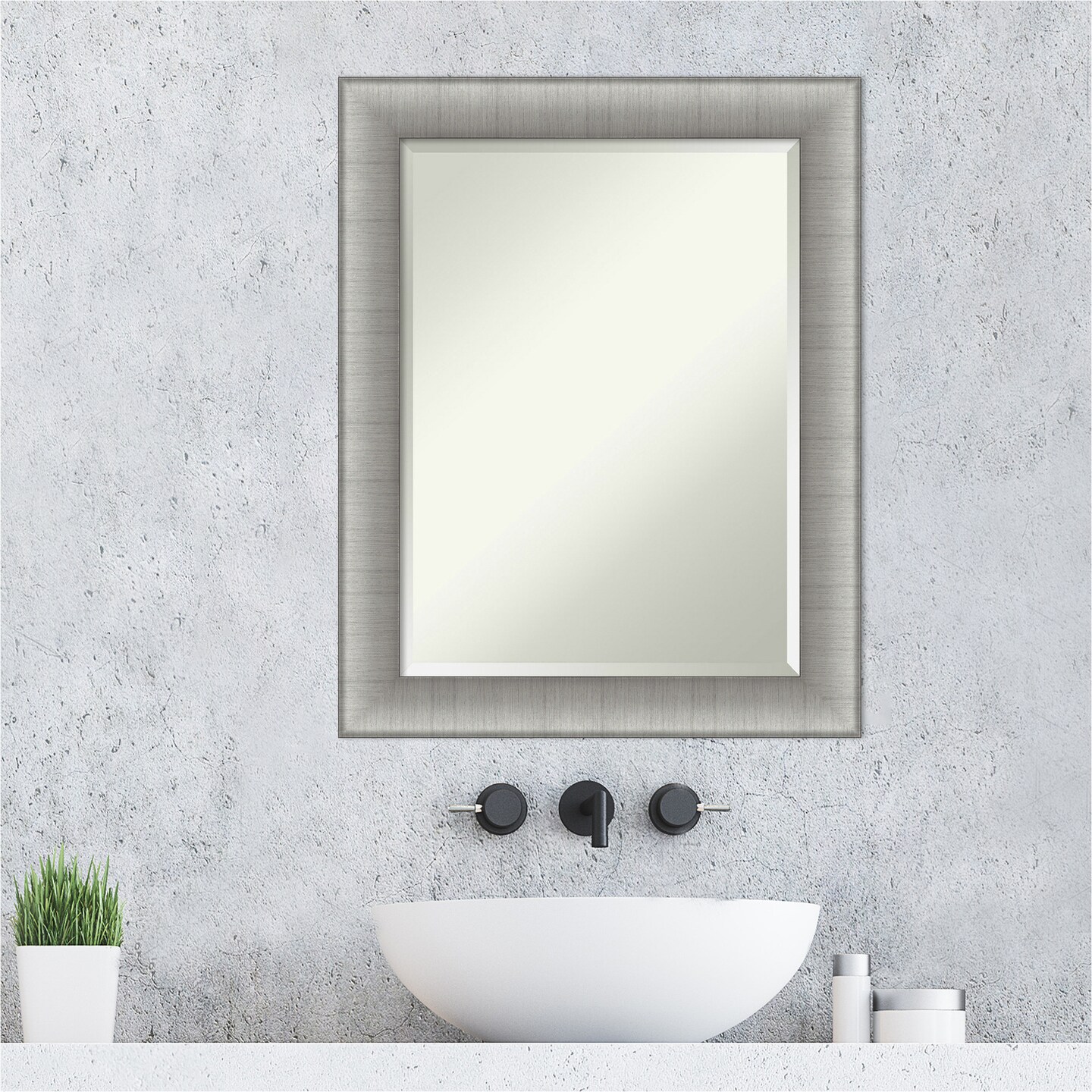Beveled Bathroom Wall Mirror, Elegant Brushed Frame