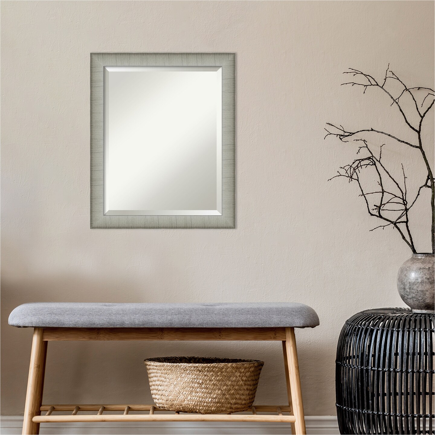 Beveled Bathroom Wall Mirror, Elegant Brushed Narrow Frame