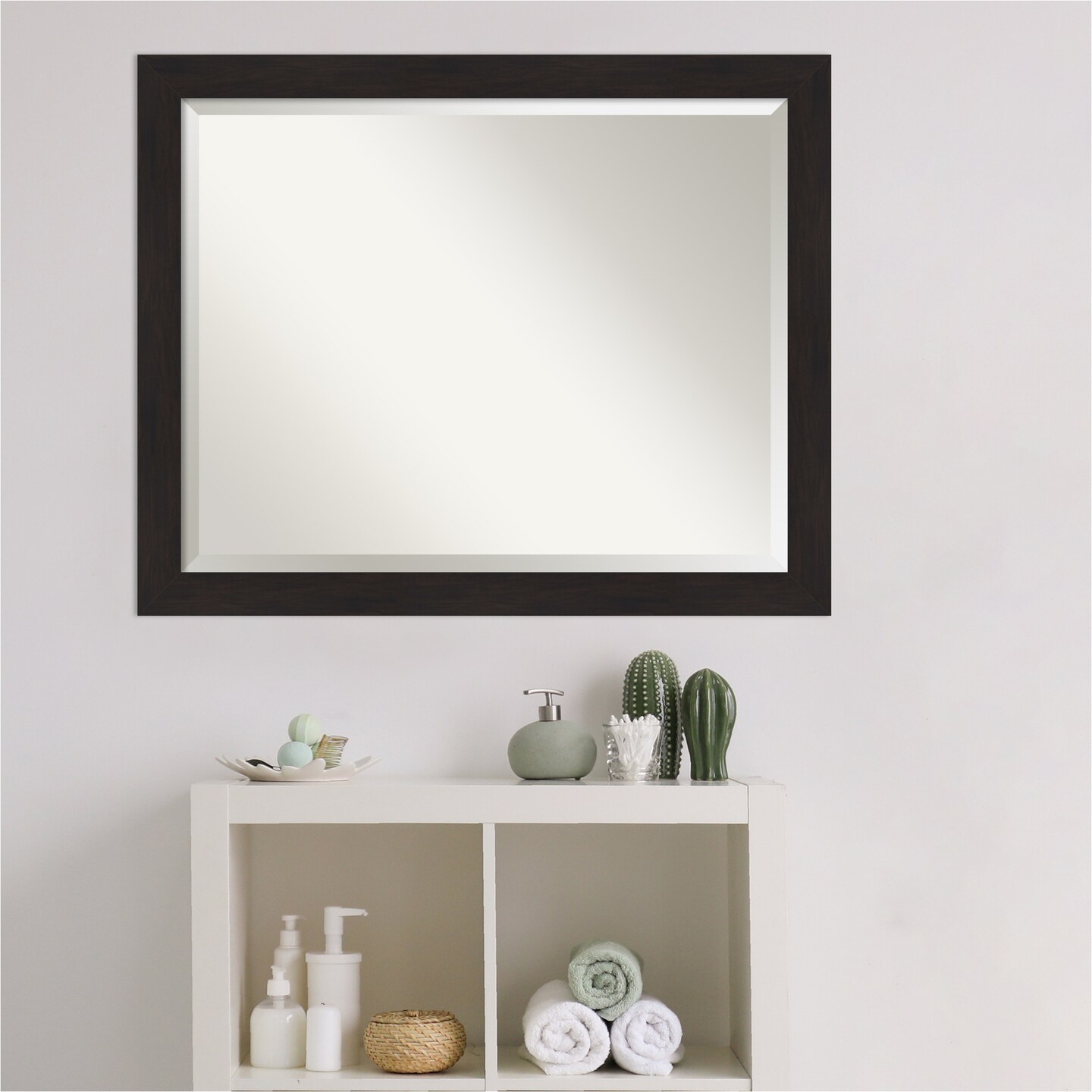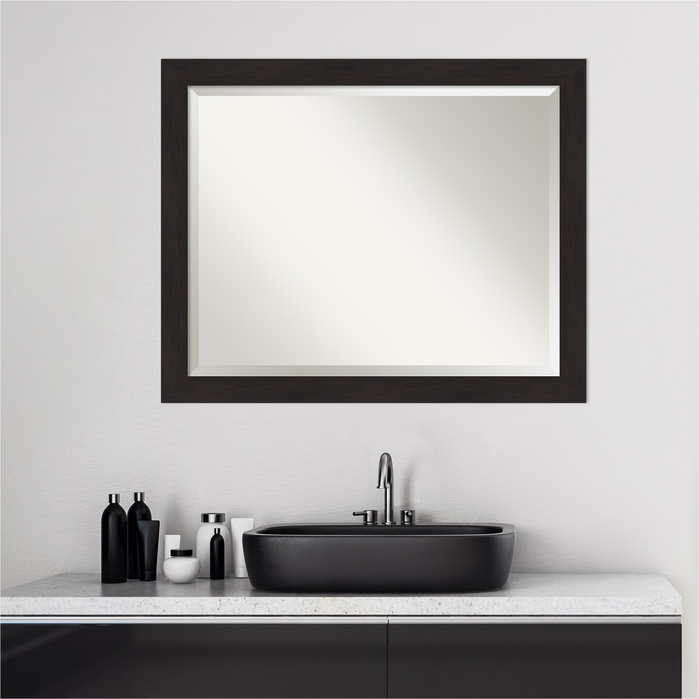 Beveled Bathroom Wall Mirror, Furniture Espresso Narrow Frame