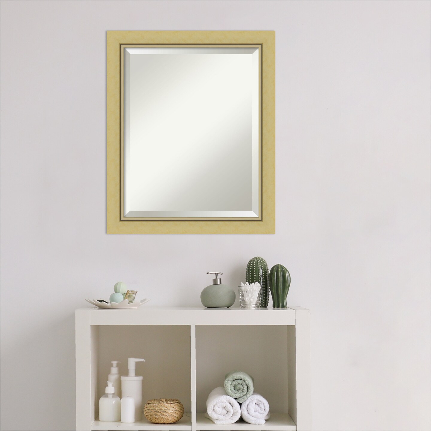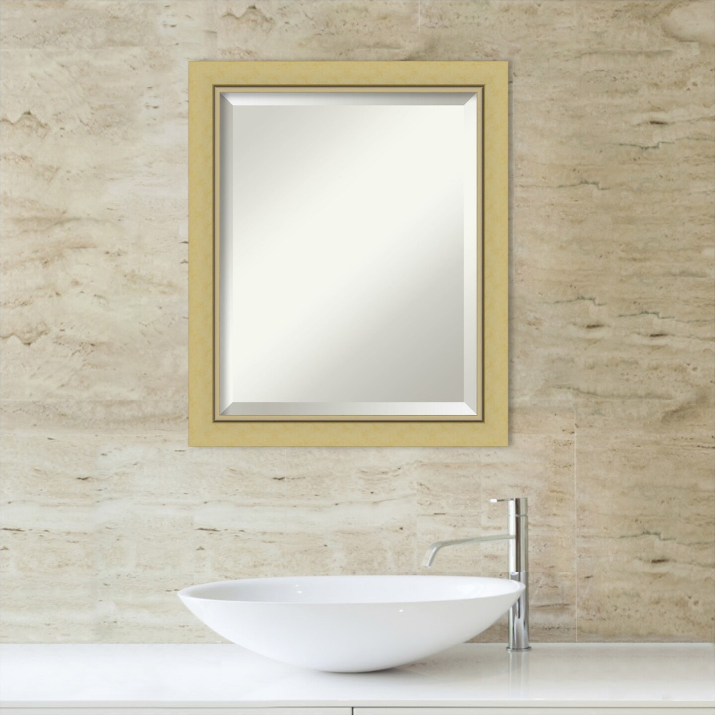 Beveled Bathroom Wall Mirror, Landon Gold Narrow Frame