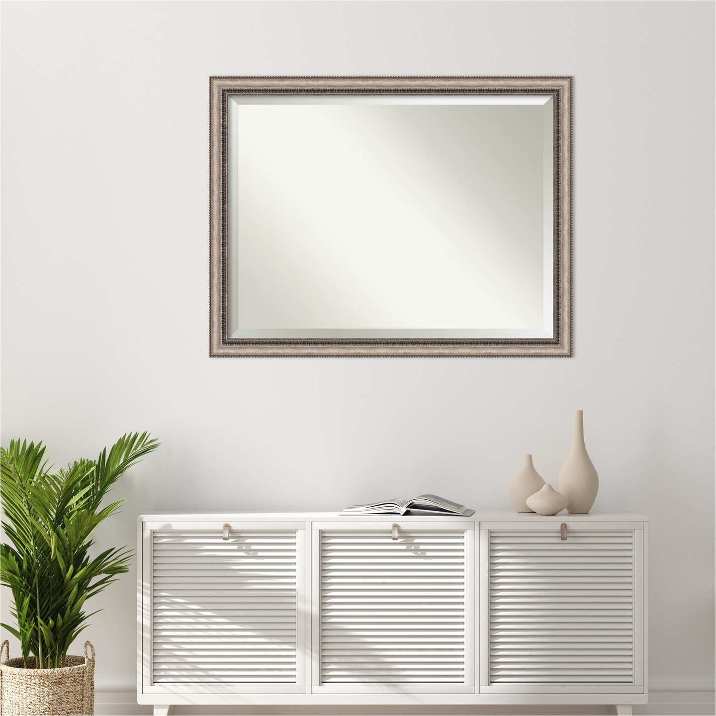 Beveled Bathroom Wall Mirror, Lyla Ornate Silver Frame