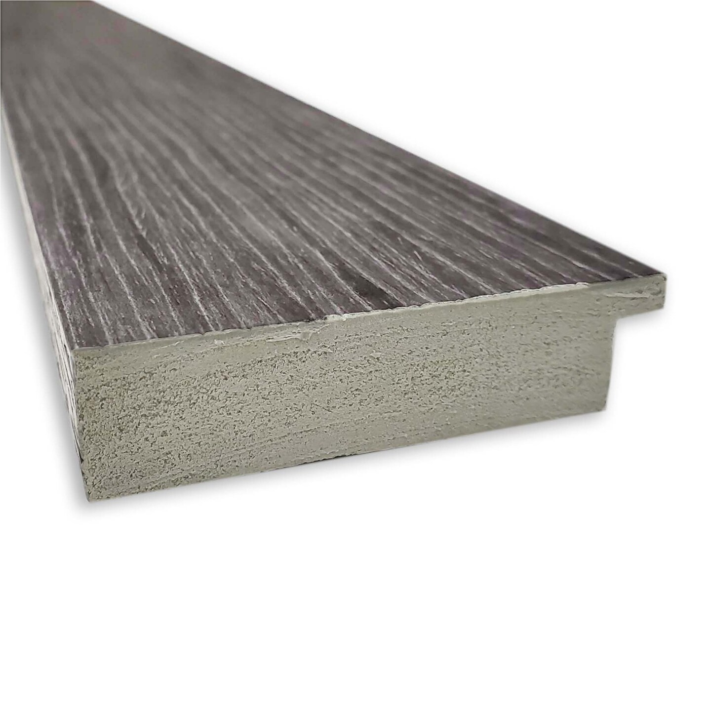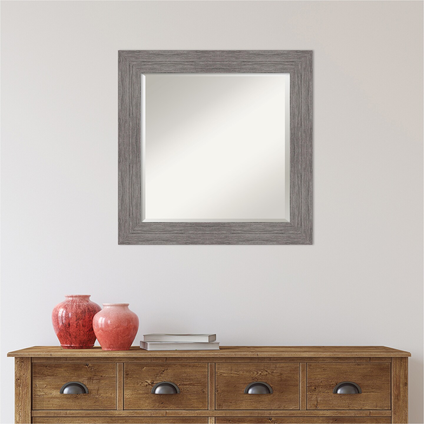 Beveled Bathroom Wall Mirror, Pinstripe Plank Grey Frame