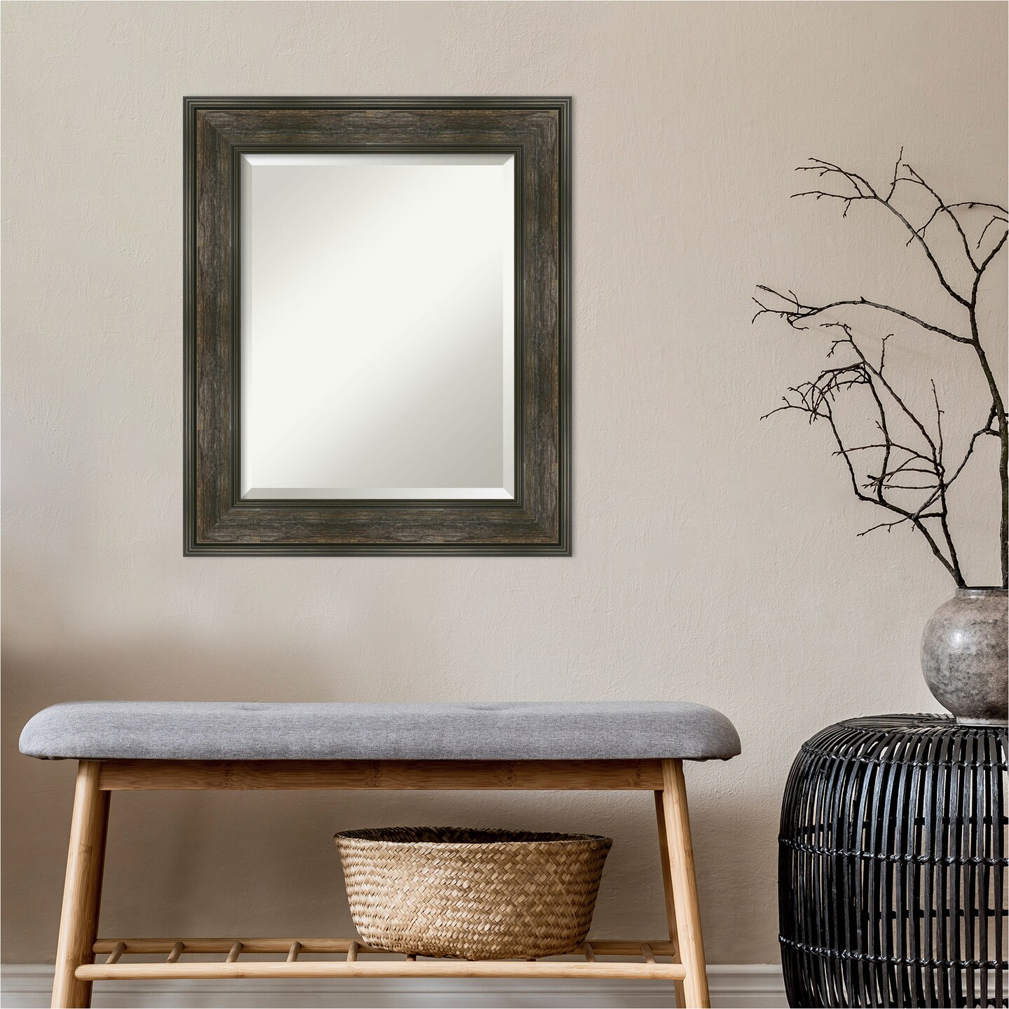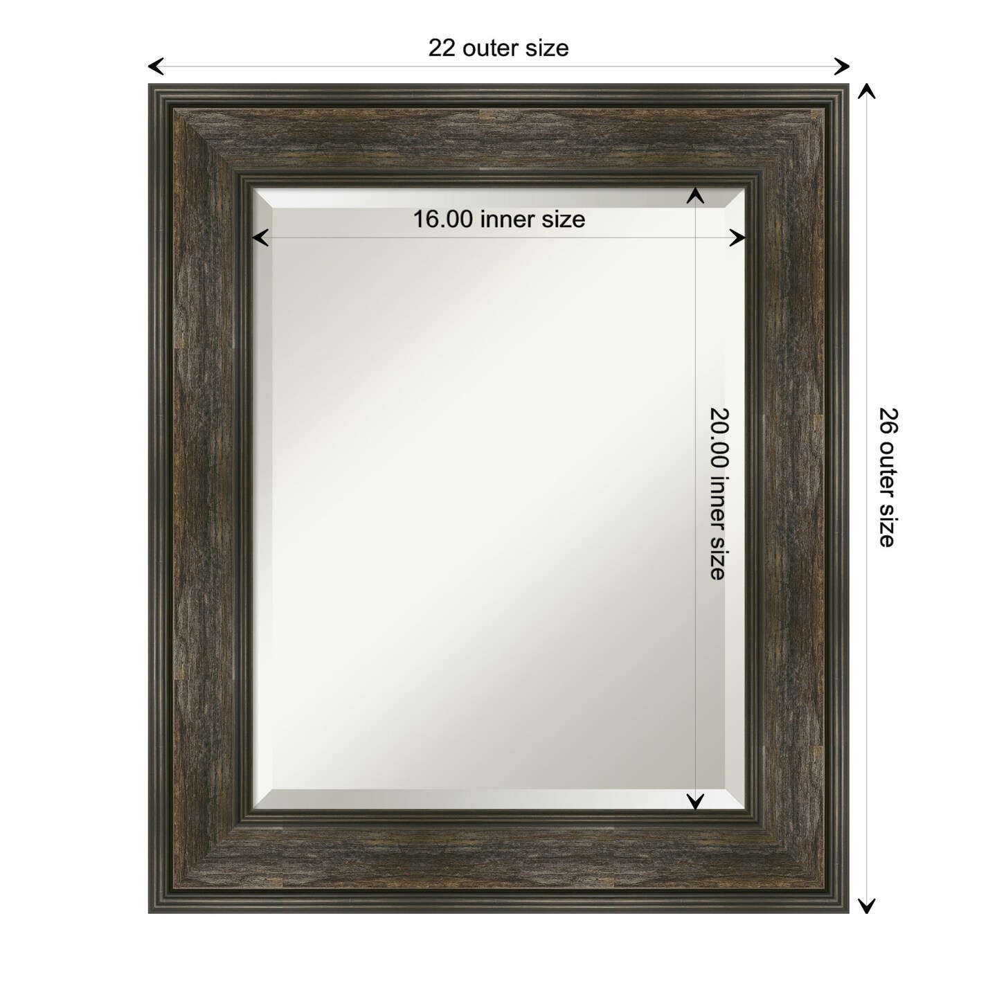Beveled Bathroom Wall Mirror, Rail Rustic Char Frame
